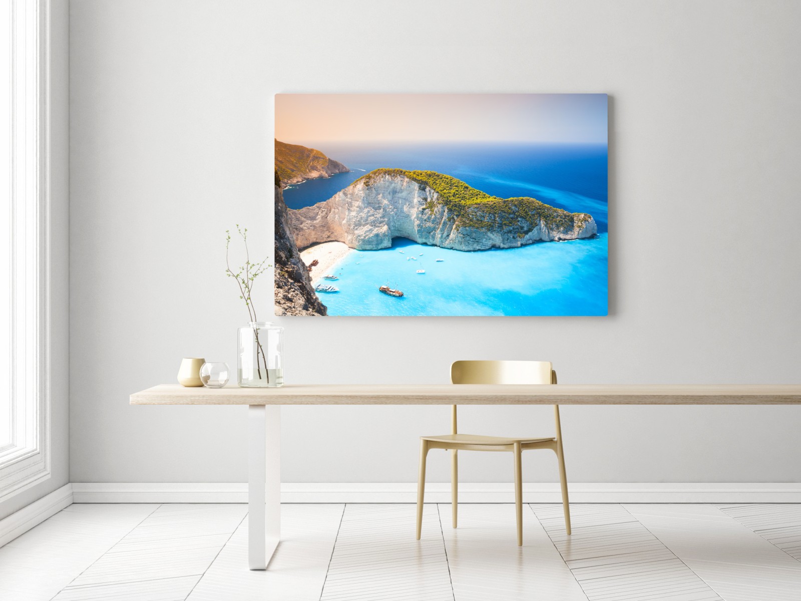 Bringen Sie die sonnigen Klippen und das türkisfarbene Wasser des Navagio Strandes in Ihr Zuhause und schaffen Sie einen beruhigenden Küstenakzent.