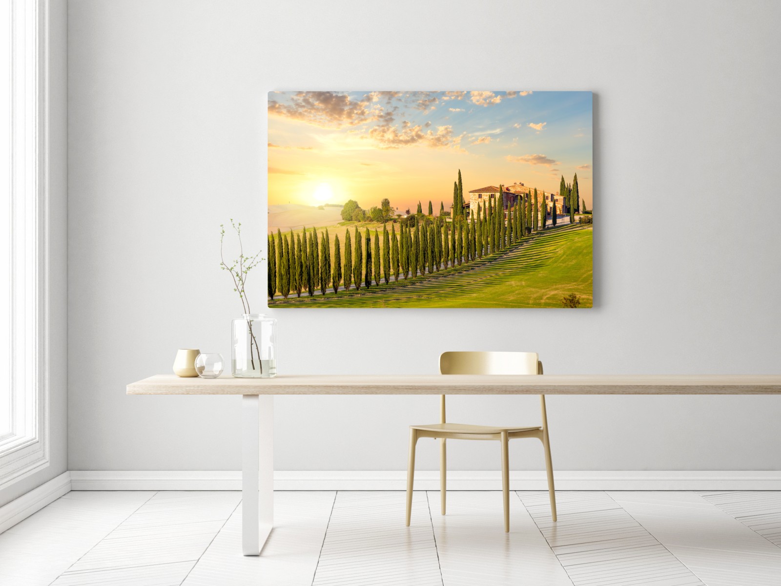 Leinwandbild Toskana sonnenuntergang zypressenallee – Wallnifity®