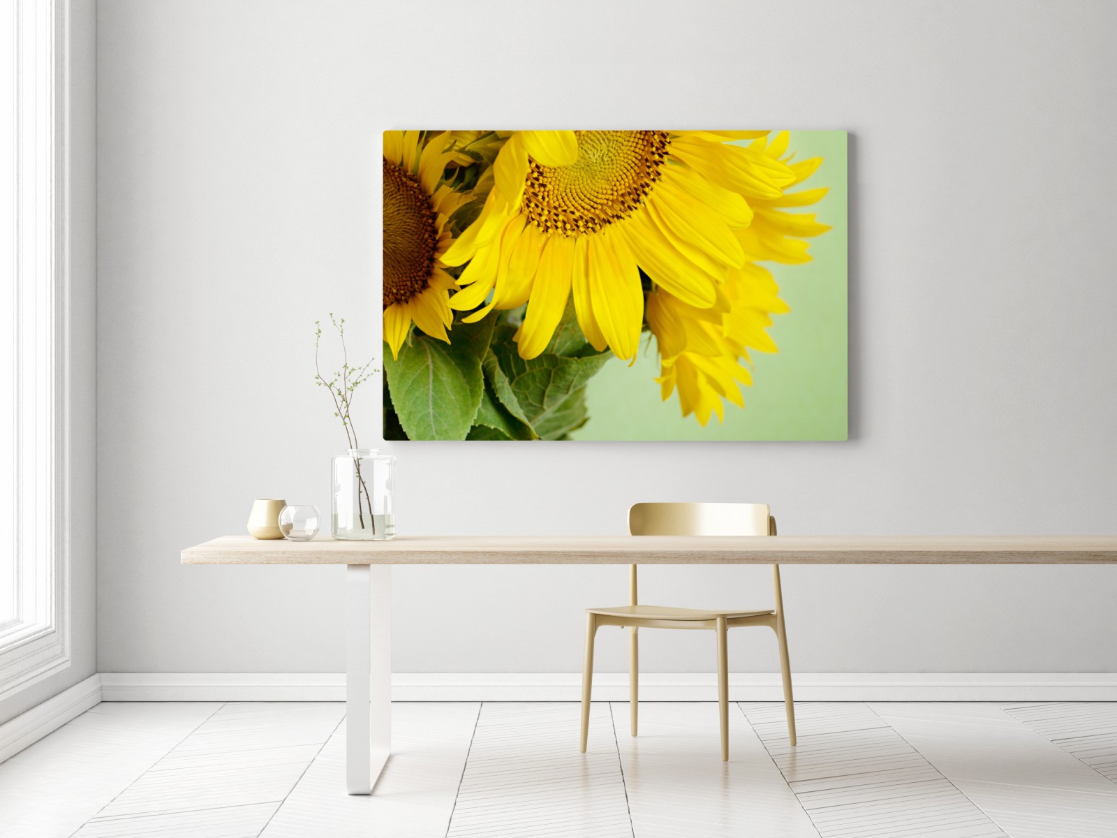 Leinwandbild Heller sonnenblumenstrauß auf grünem hintergrund