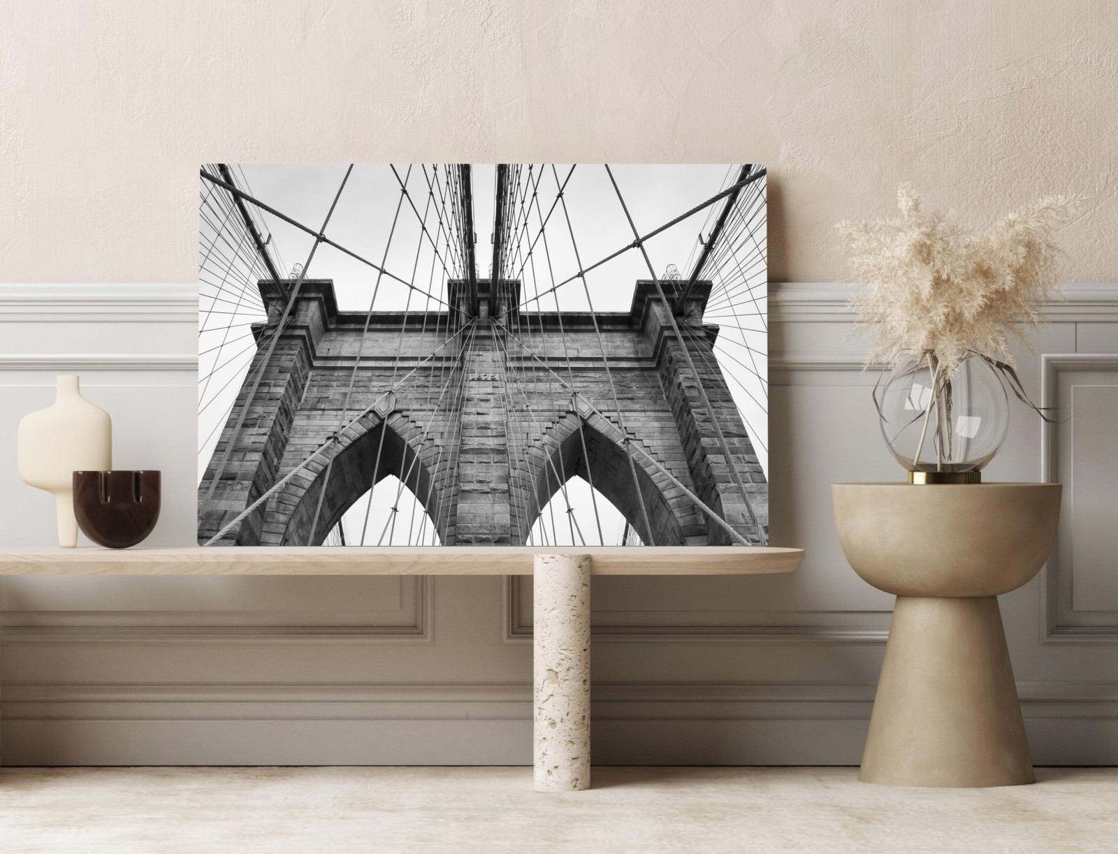 Leinwandbild Perspektive der Brooklyn Bridge in monochrom