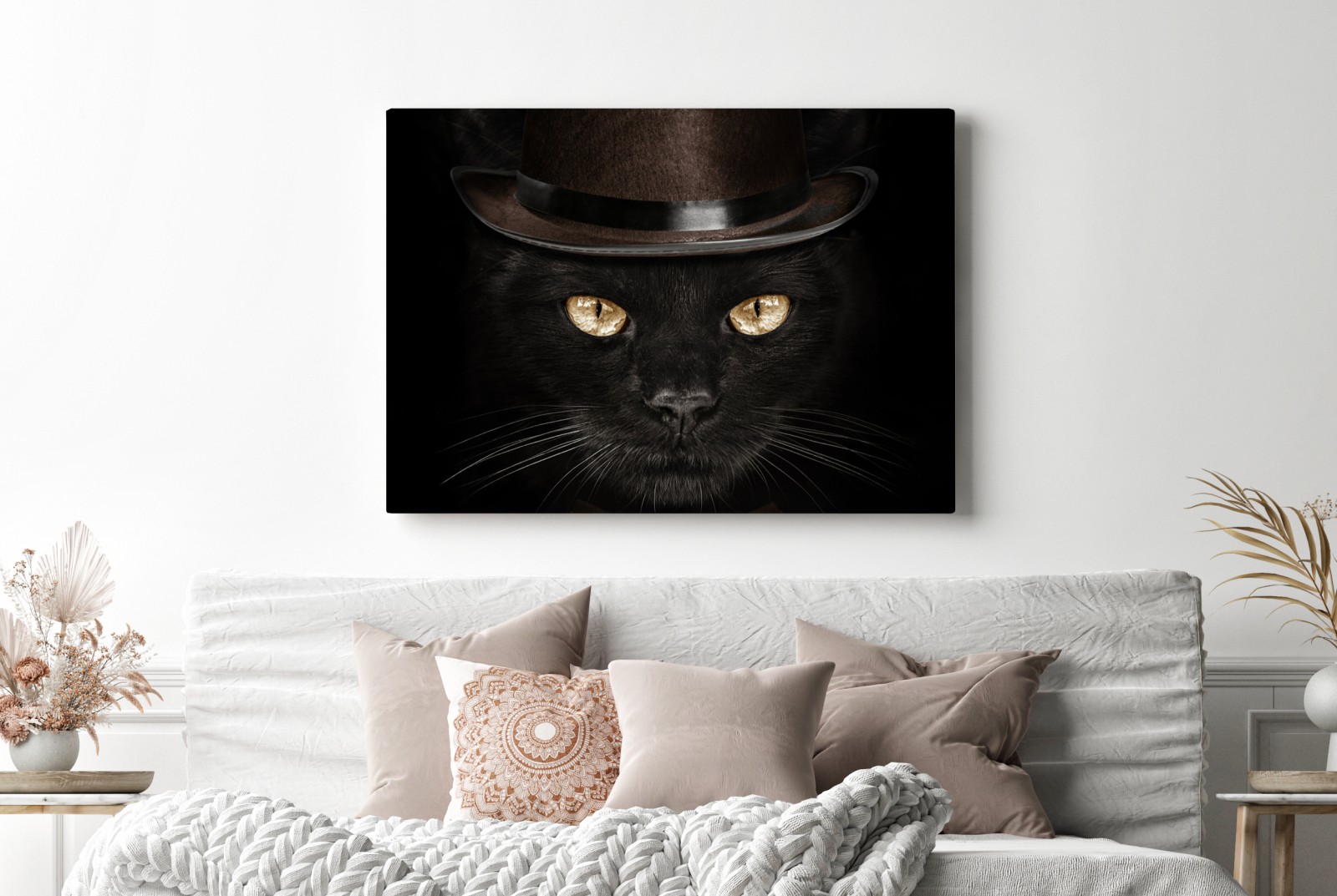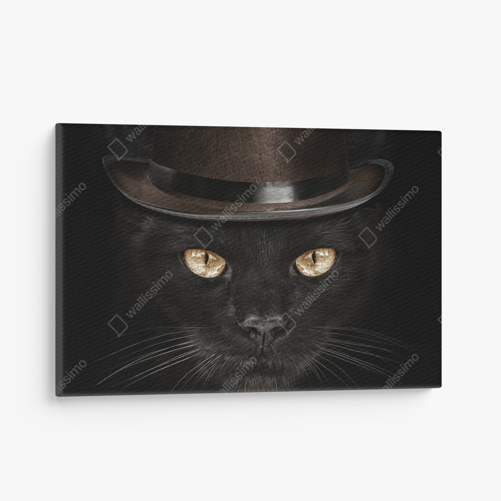 Leinwandbild Elegante schwarze katze mit zylinder und fliege