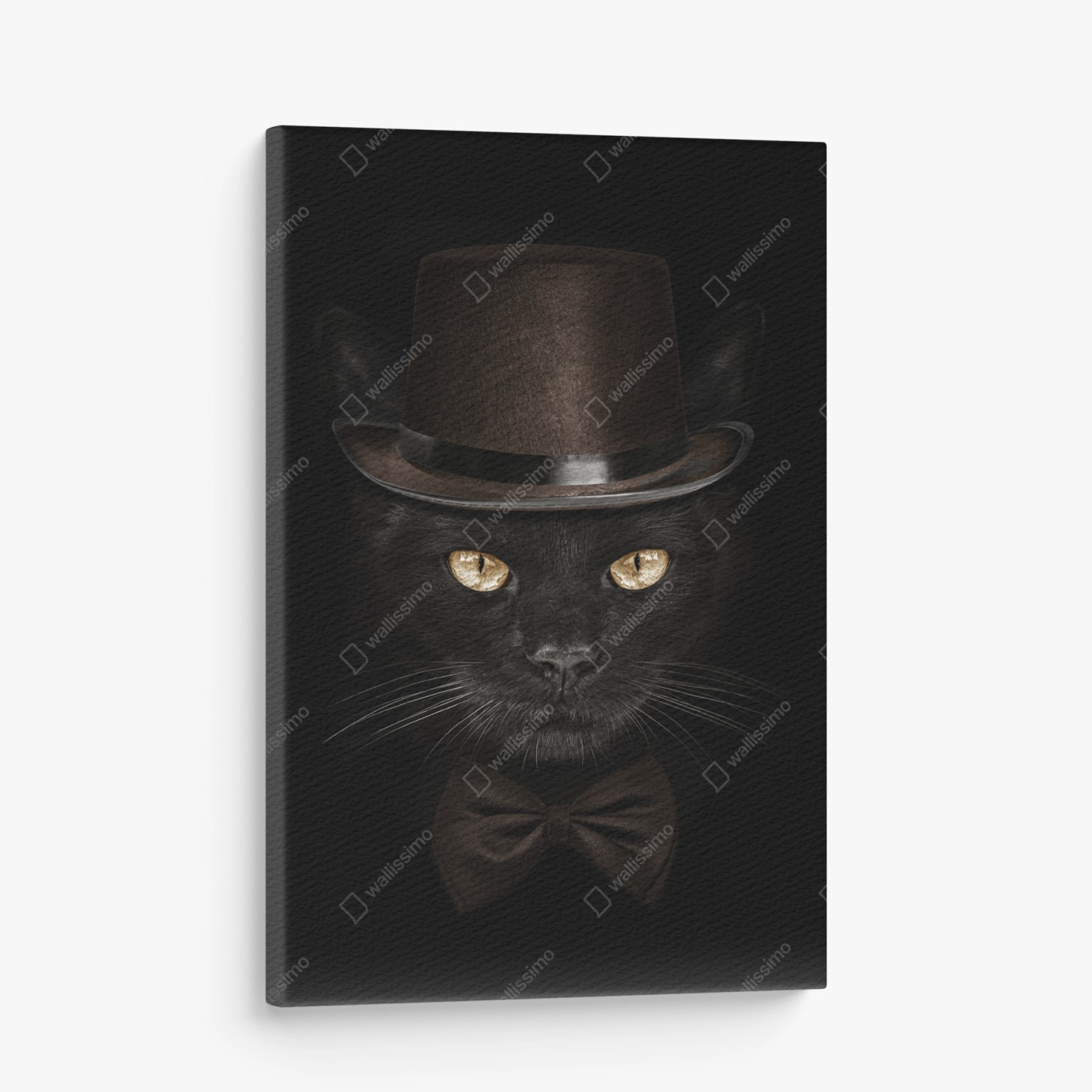 Leinwandbild Elegante schwarze katze mit zylinder und fliege