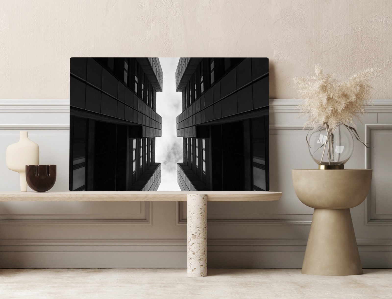Leinwandbild Vertikale städtische symmetrie in monochrom