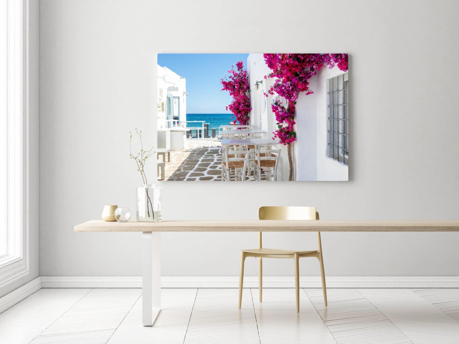 Leinwandbild Sonnige mediterrane gasse mit bougainvillea