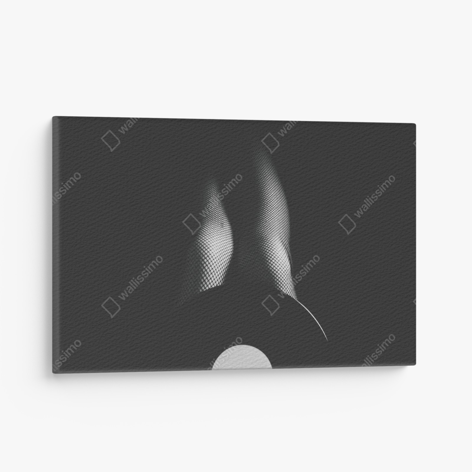 Leinwandbild Schallplatte und beine in netzstrümpfen