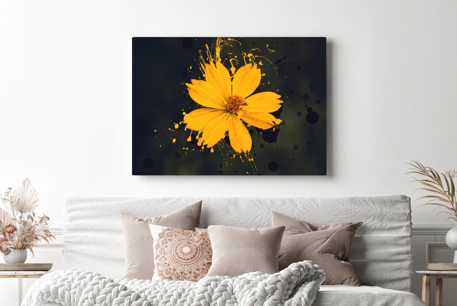 Leinwandbild Leuchtende gelbe blüte auf dunklem hintergrund