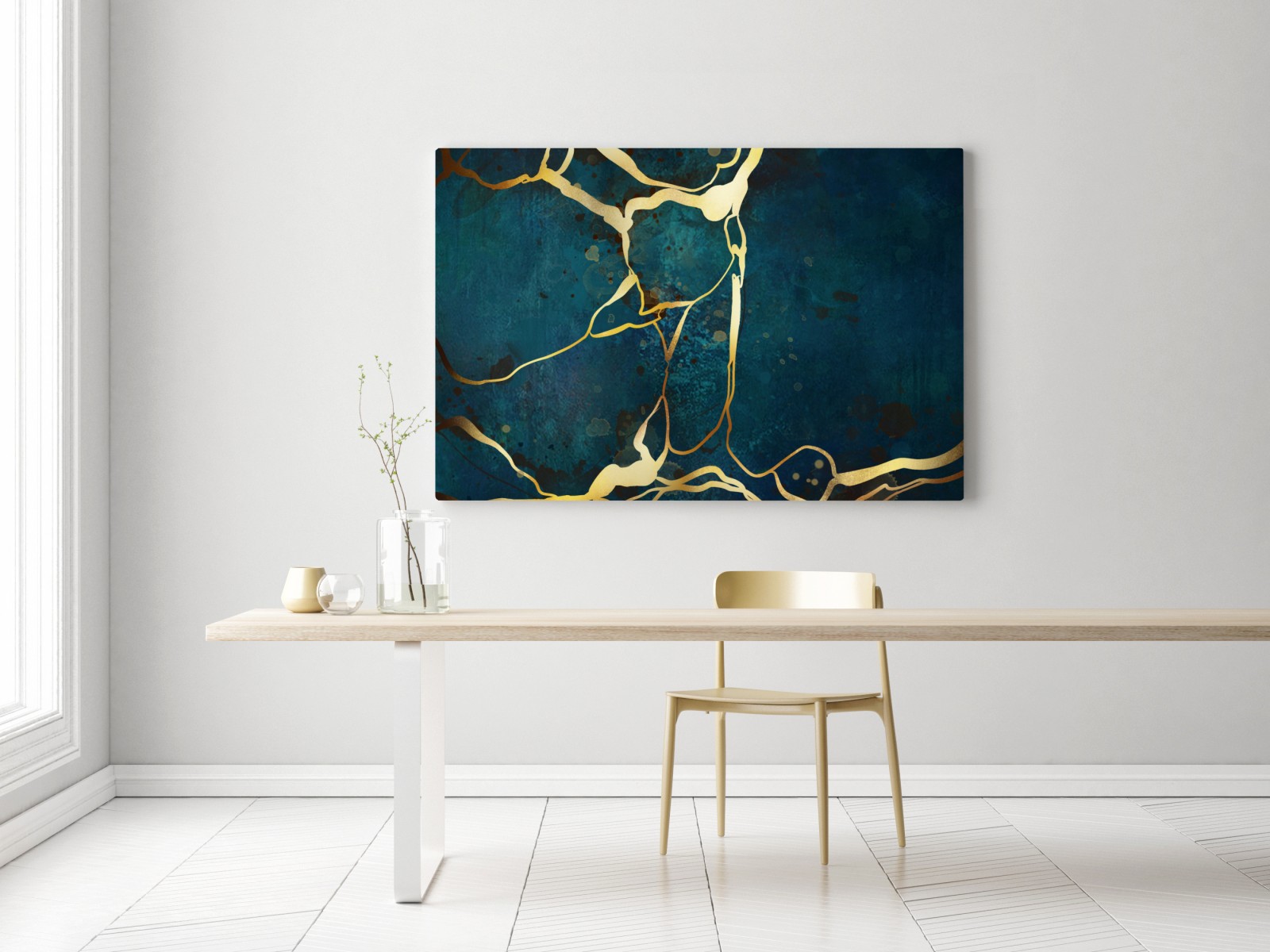 Leinwandbild Türkis und gold abstrakt mit goldenen adern