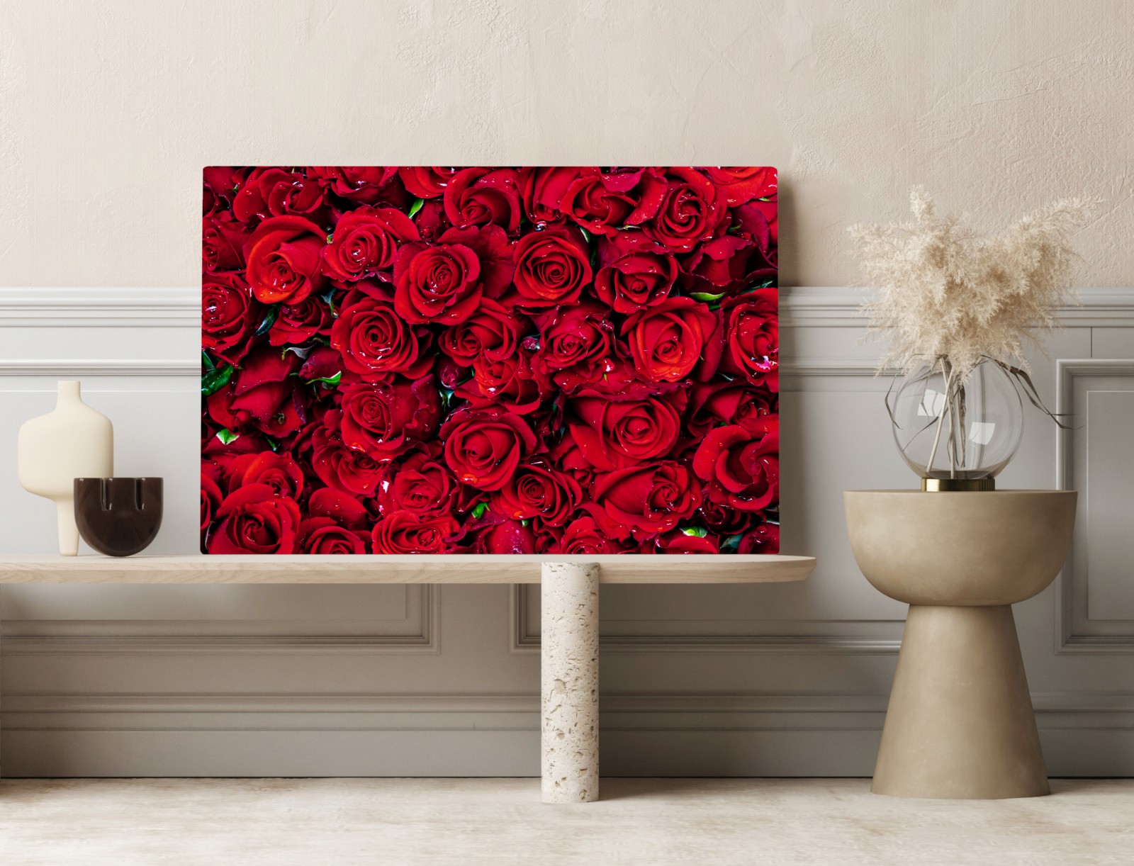 Leinwandbild Dichte wand aus roten rosen