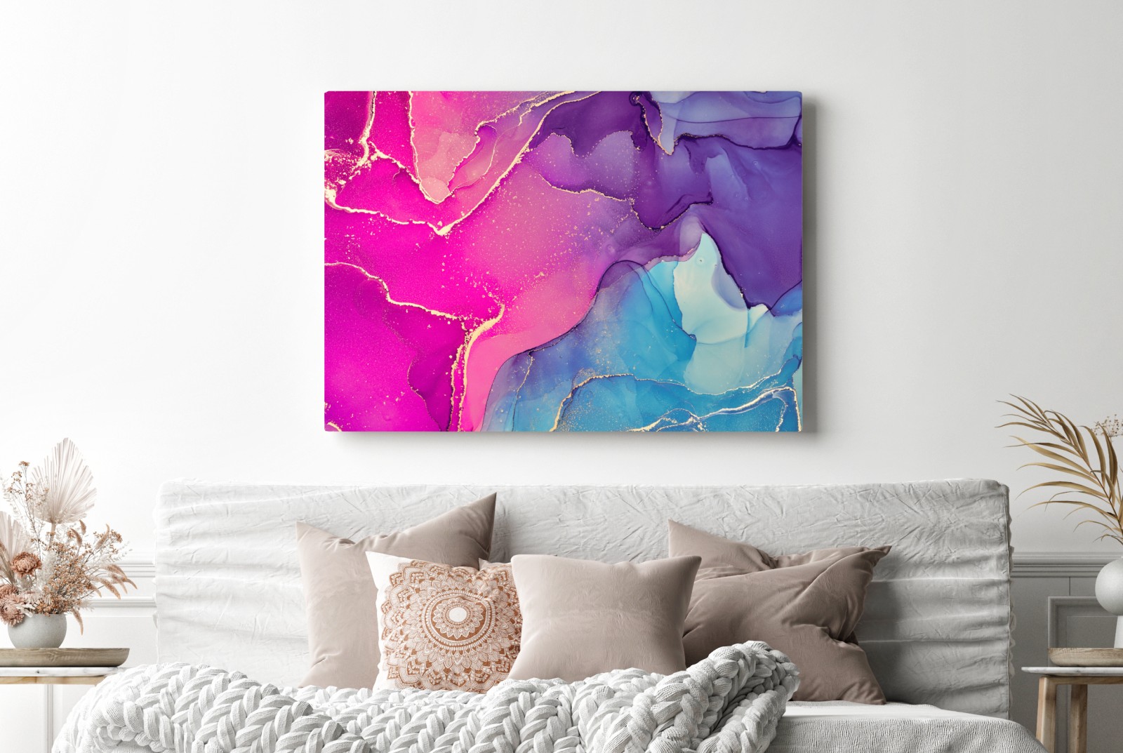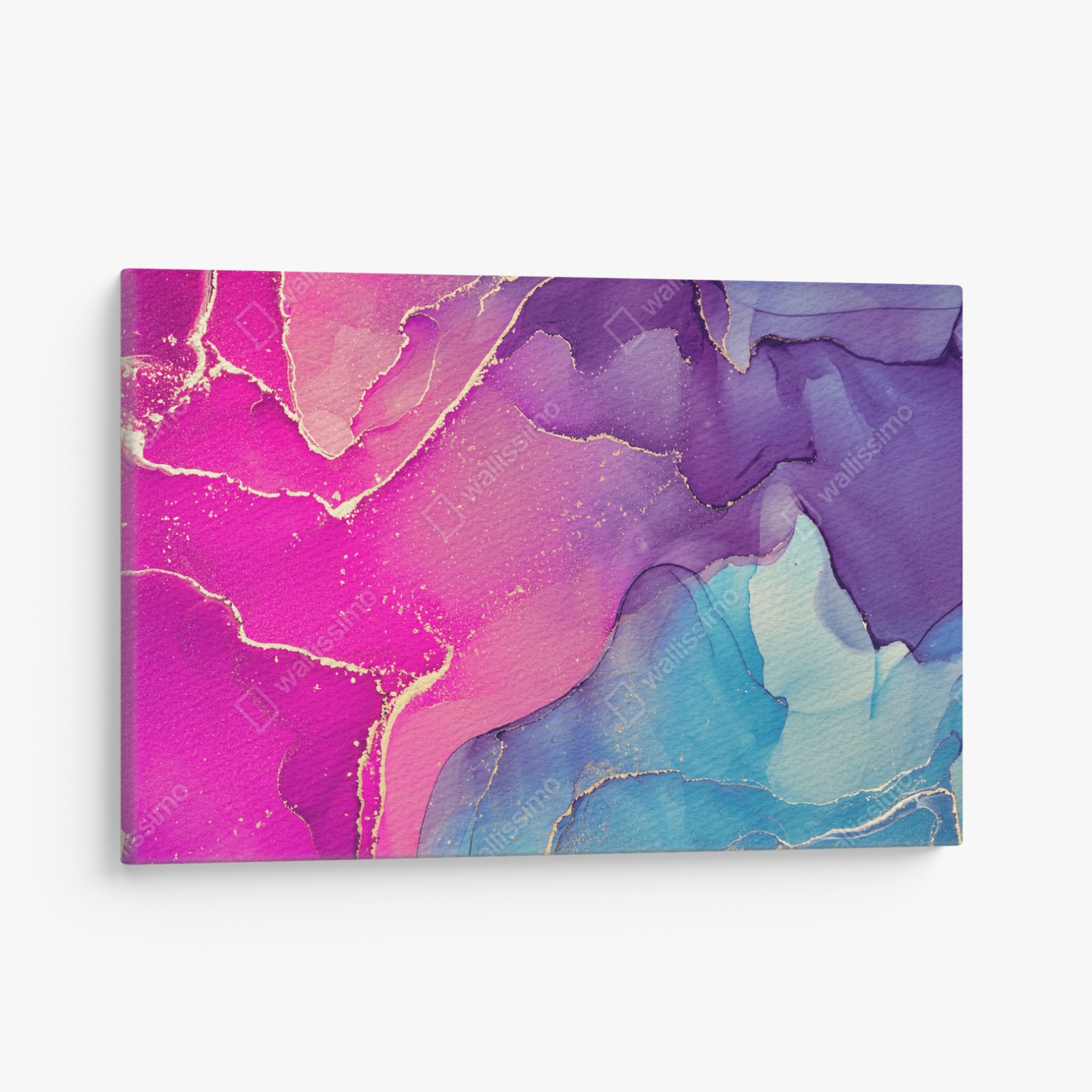 Bringen Sie kräftige Farben und fließende Eleganz in Ihren Raum mit dieser leuchtenden marmorierten Komposition aus alkohol-tinte mit goldenen Akzenten.MehrWeniger