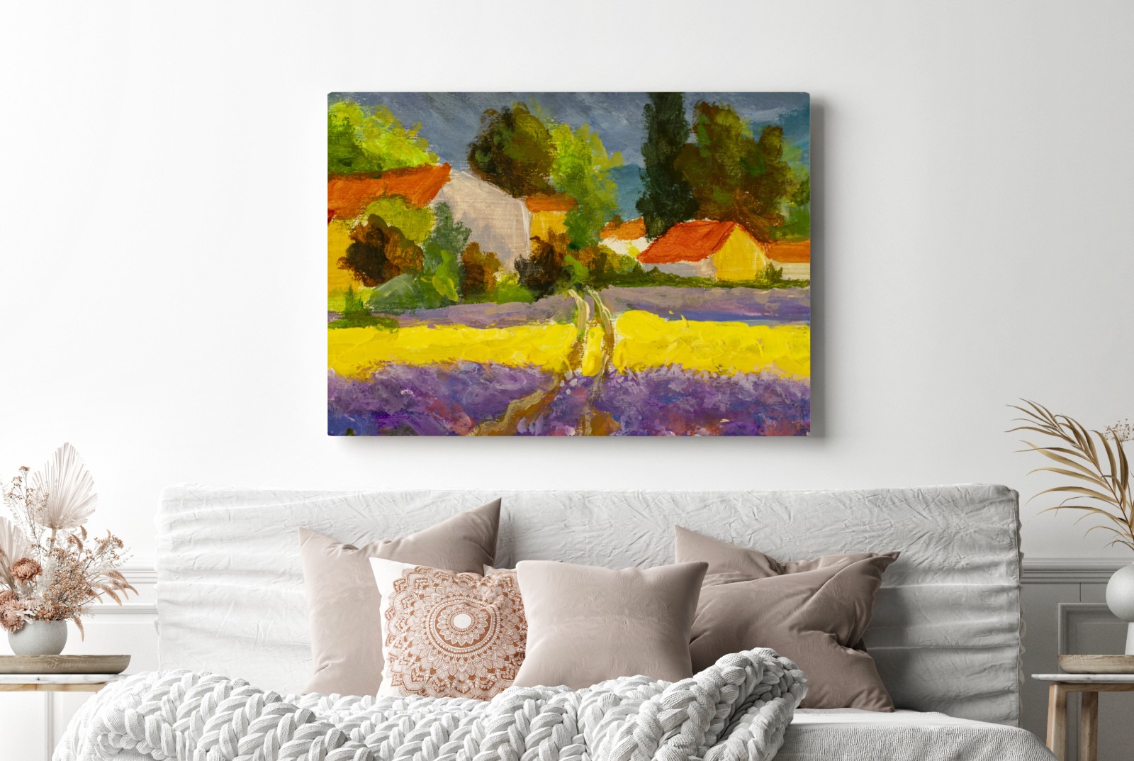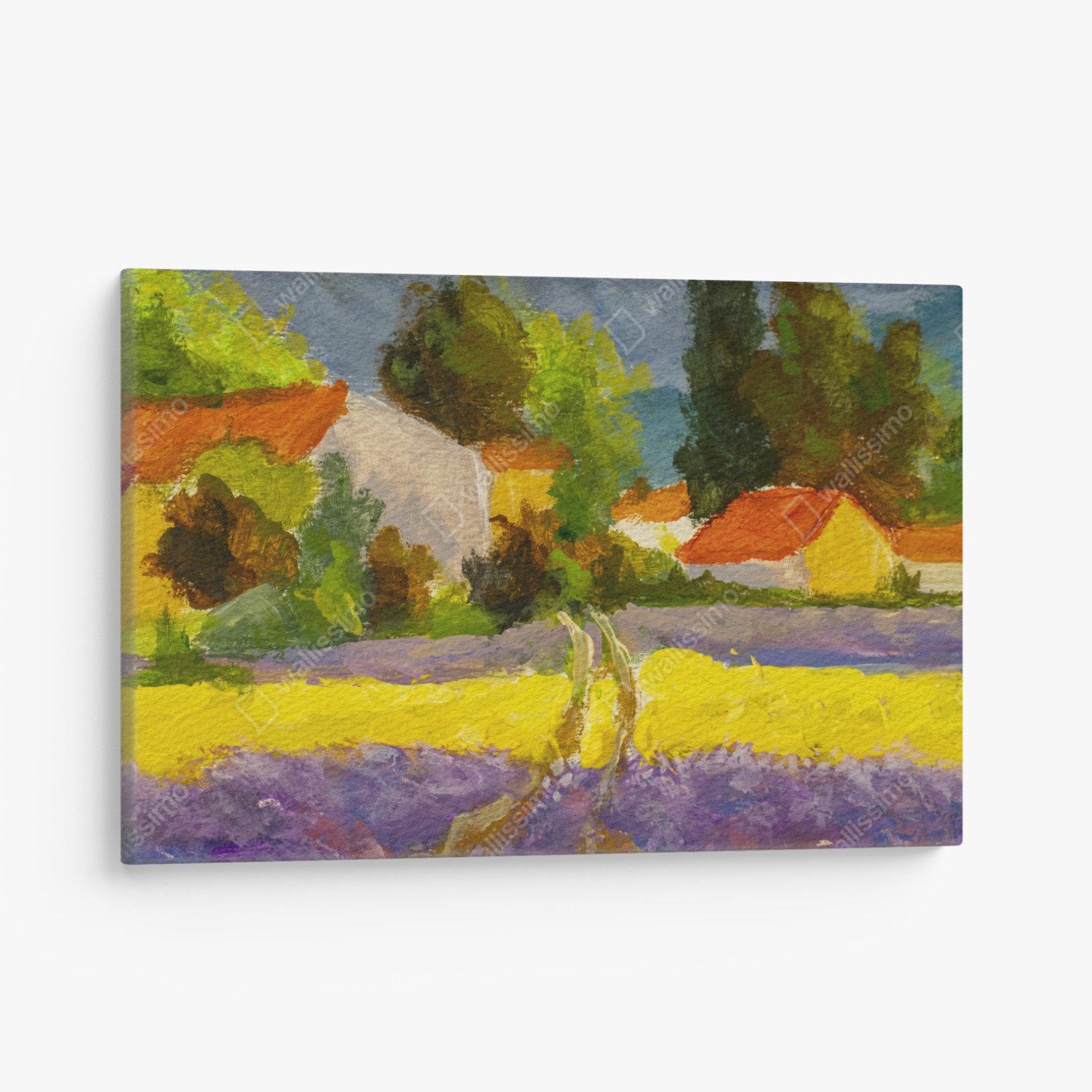 Leinwandbild Lavendelfelder bei sonnenuntergang
