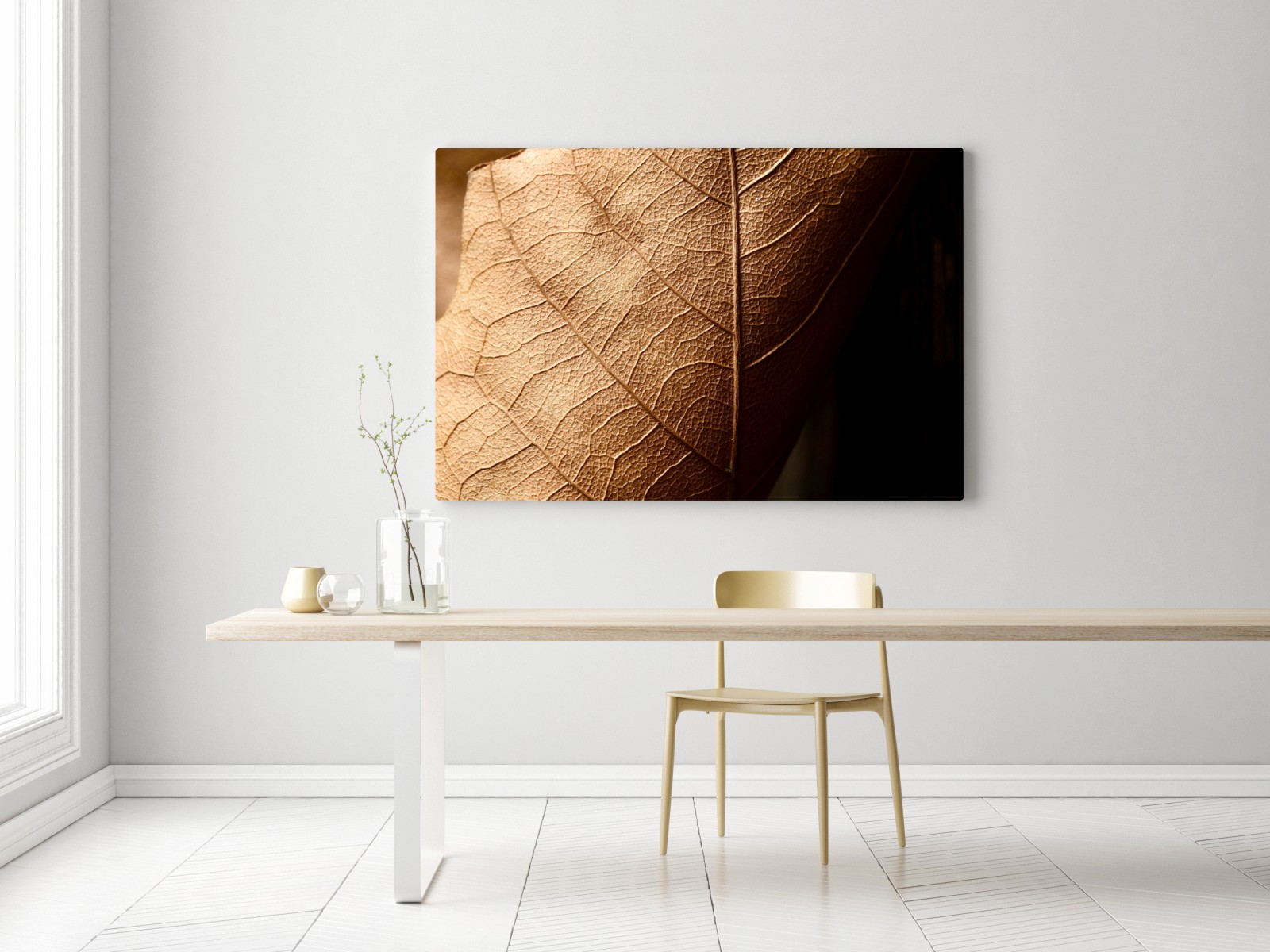 Leinwandbild Strukturiertes trockenes blatt nahaufnahme