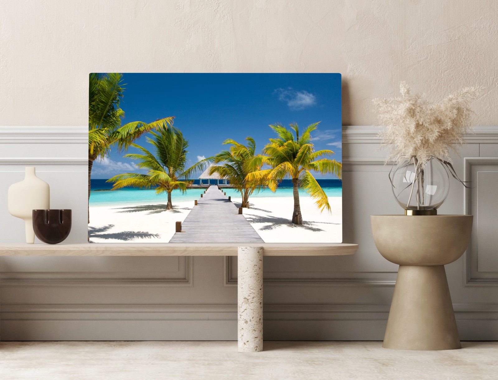 Leinwandbild Tropischer steg über türkisfarbenes meer