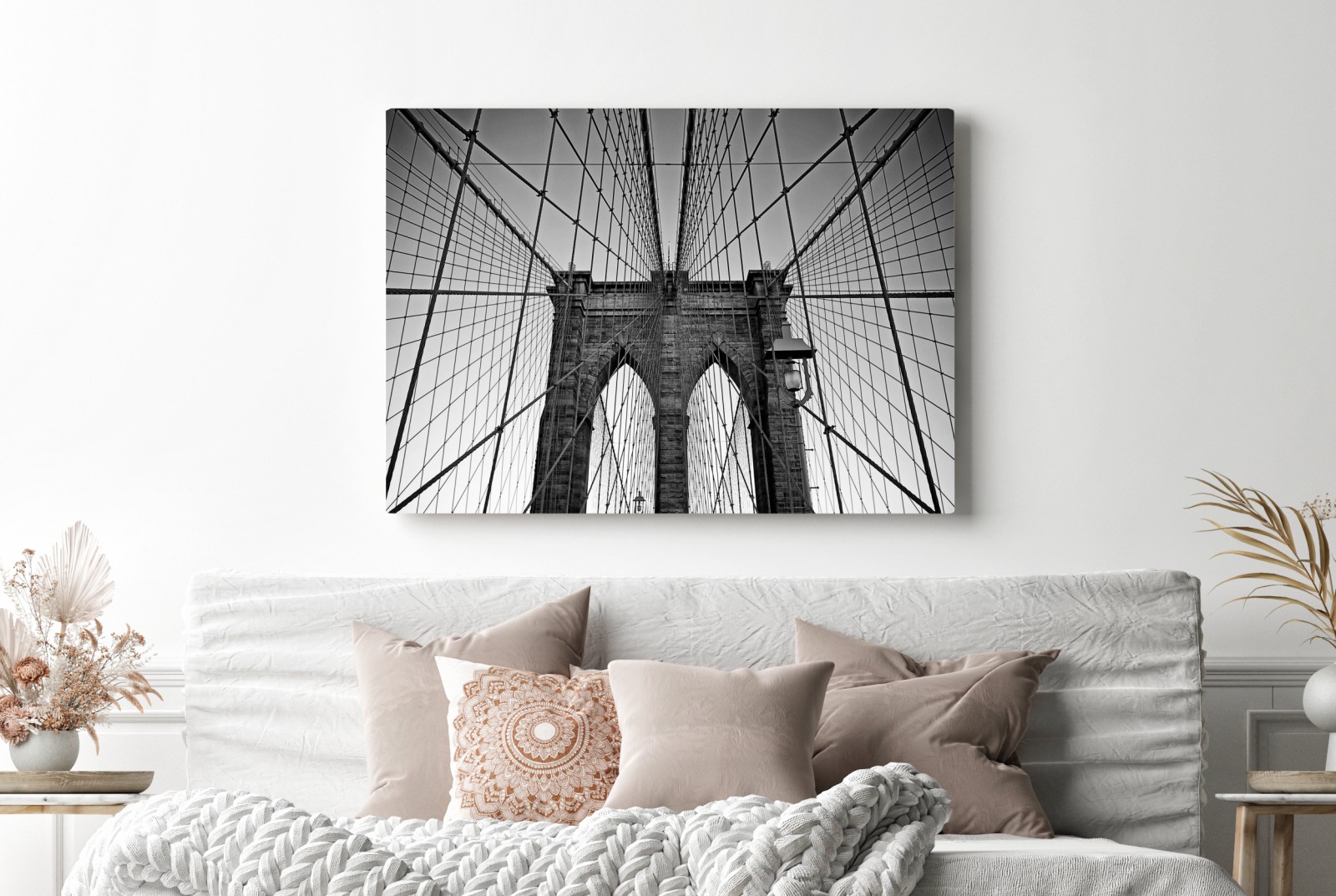 Leinwandbild Symmetrische hängebrücke in schwarzweiß
