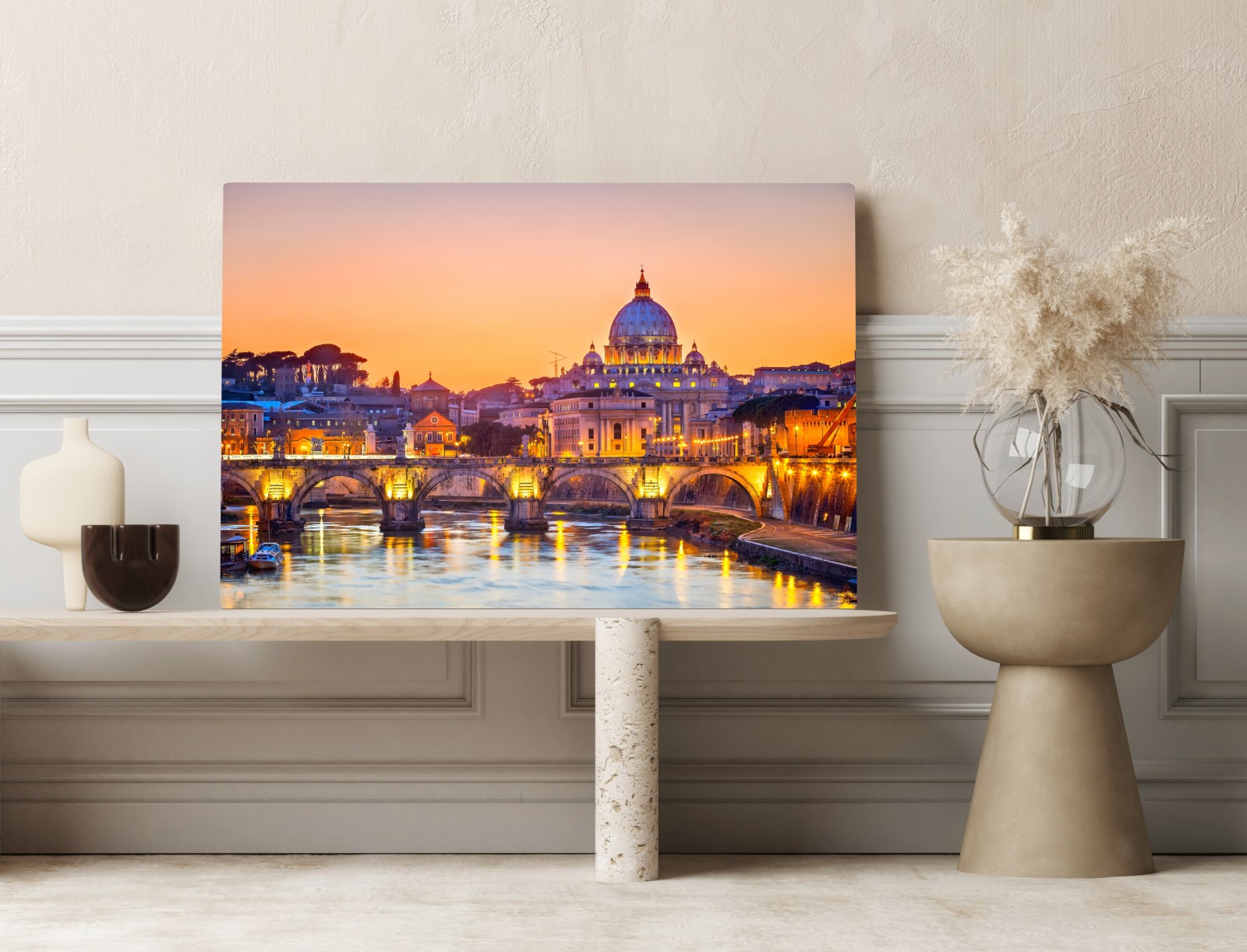 Leinwandbild Sonnenuntergang über dem Petersdom und dem Tiber