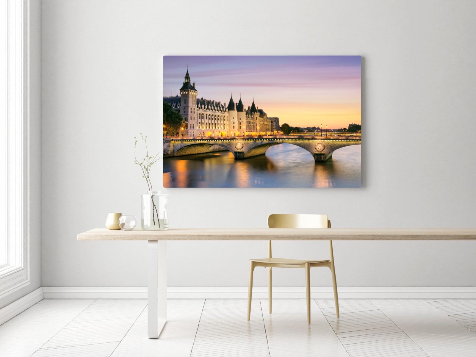 Leinwandbild Paris sonnenuntergang über der historischen brücke