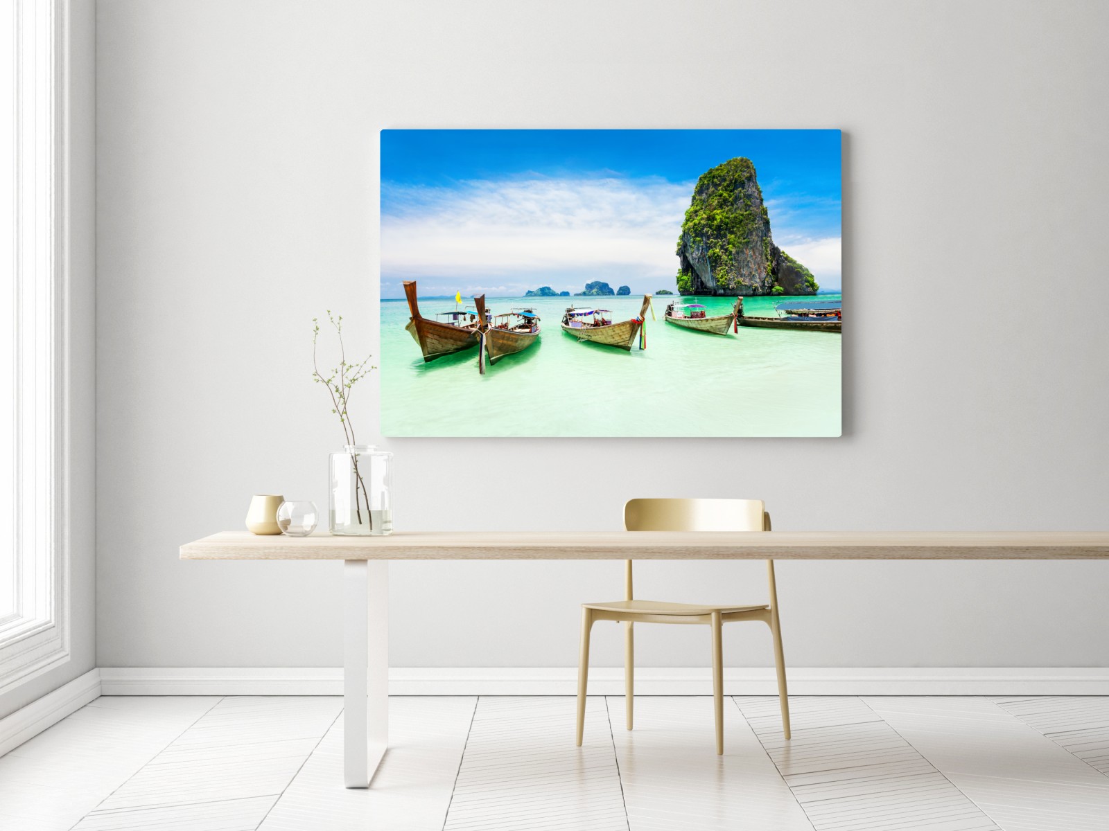 Leinwandbild Tropische longtail-boote am türkisfarbenen strand