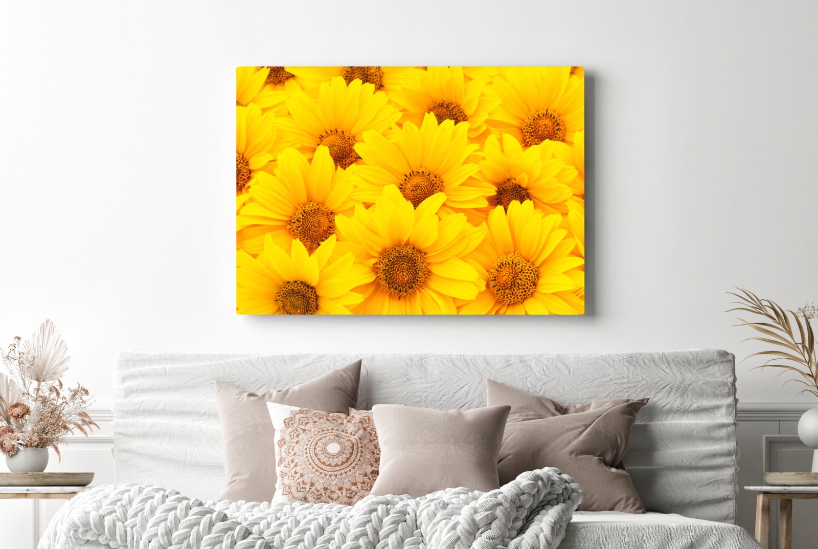 Leinwandbild Leuchtende gelbe sonnenblumen in nahaufnahme