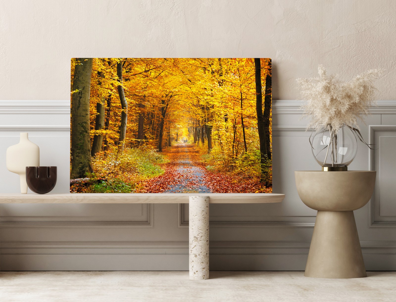 Leinwandbild Goldener herbstwald pfad