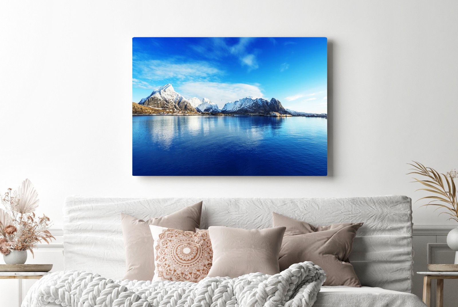 Leinwandbild Ruhige winterliche fjordlandschaft in Reine, Lofoten