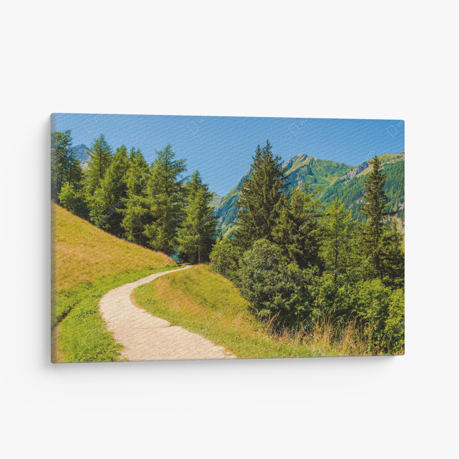 Leinwandbild Bergweg in den Schweizer Alpen im Sommer
