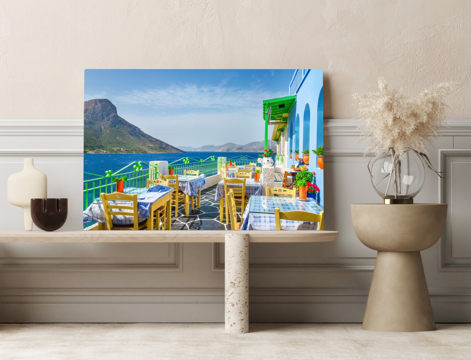Leinwandbild Sonnige terrasse am meer mit küstenblick