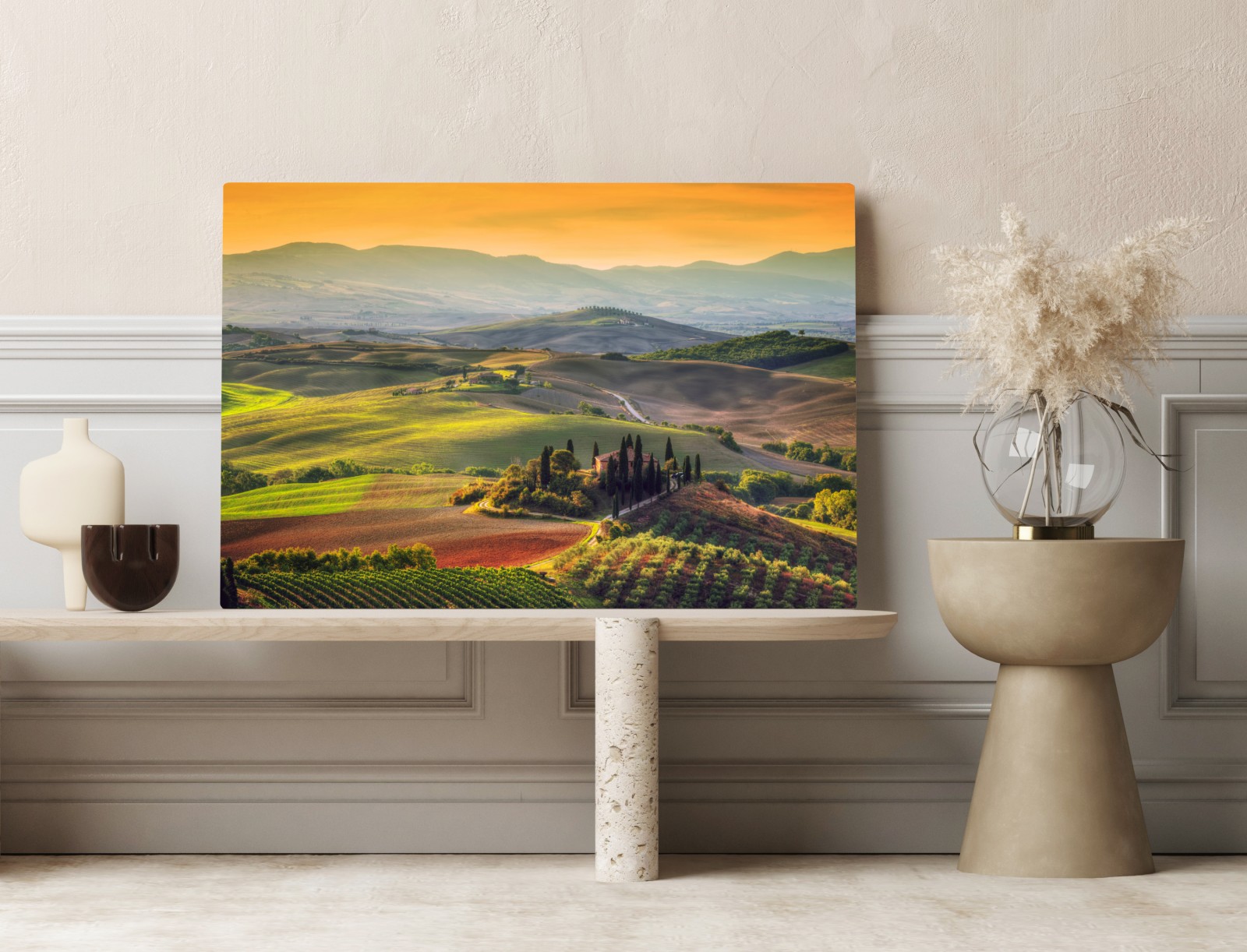 Bringen Sie die warme Stimmung der Toskana in Ihr Zuhause mit diesem friedlichen Hügelpanorama.MehrWeniger