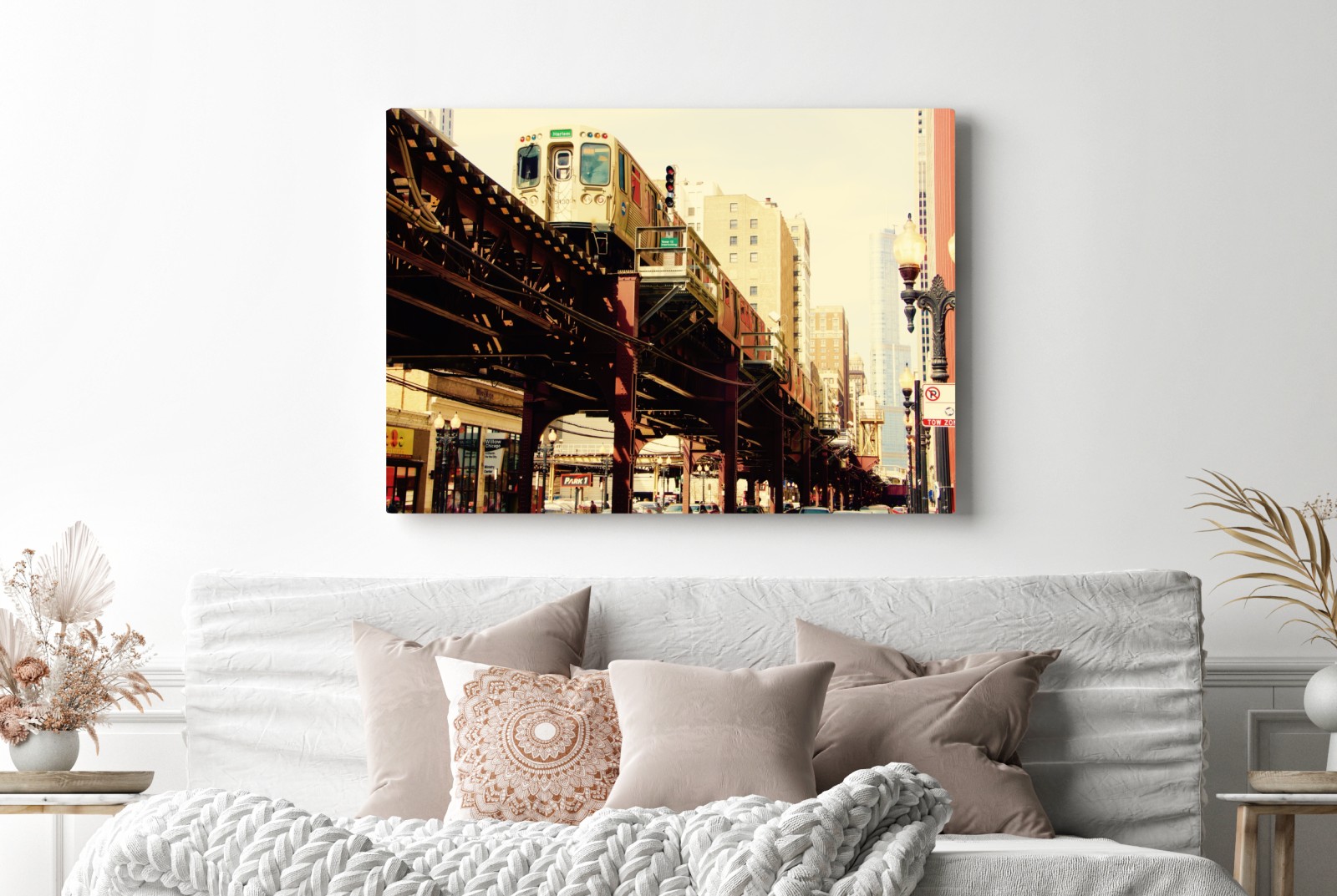 Leinwandbild Retro hochbahn über der stadtstraße