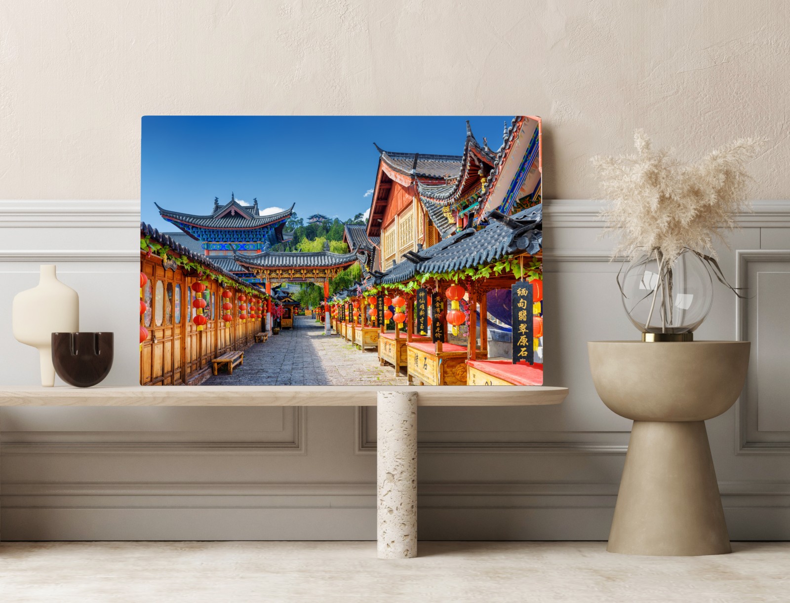 Leinwandbild Lijiang alte gasse mit laternen