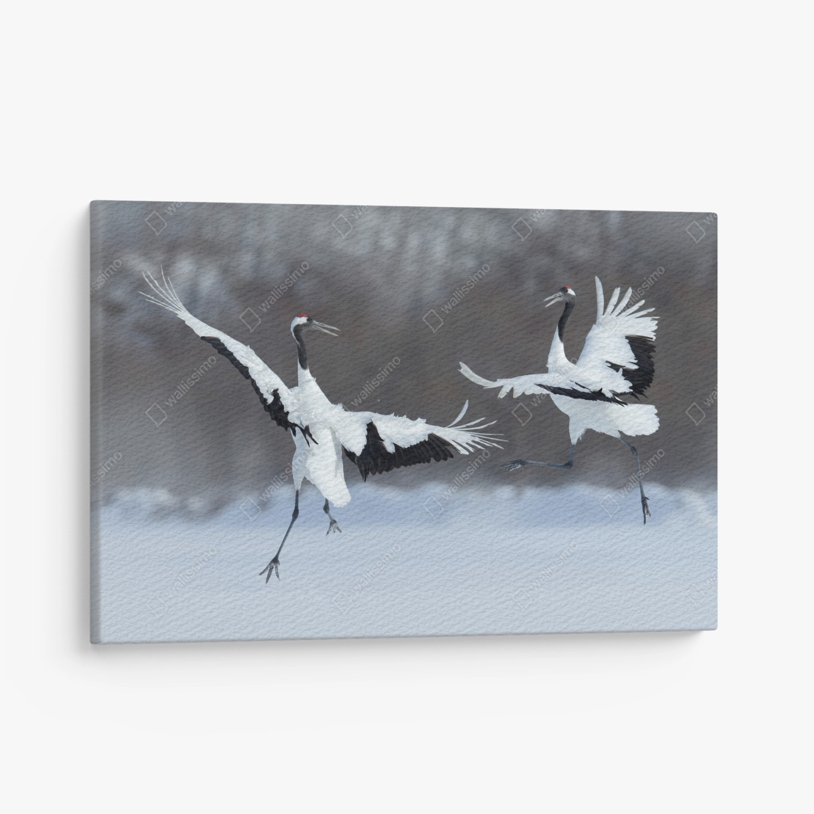 Leinwandbild Tanzende rotkronenkraniche im schnee, Hokkaido