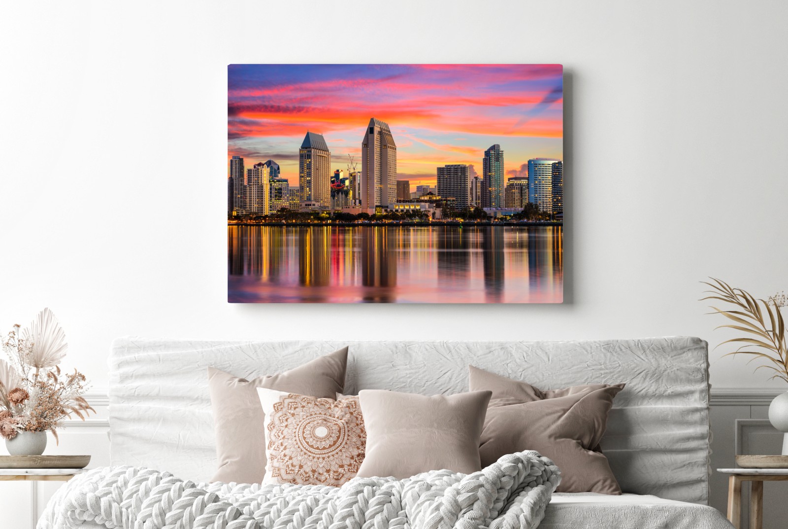Leinwandbild San Diego skyline bei sonnenuntergang
