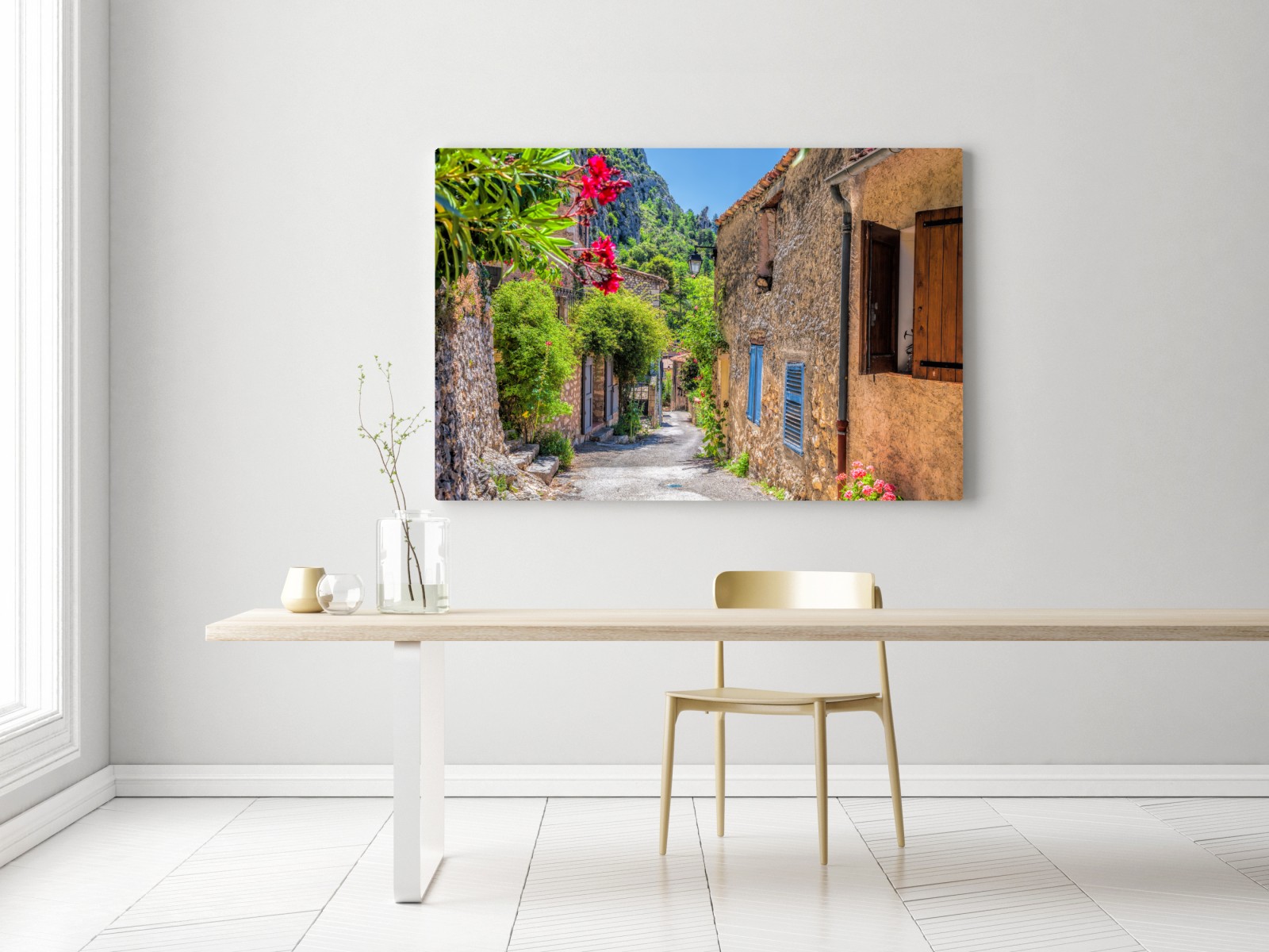 Leinwandbild Moustiers Sainte Marie reizvolle Dorfstraße in Provence