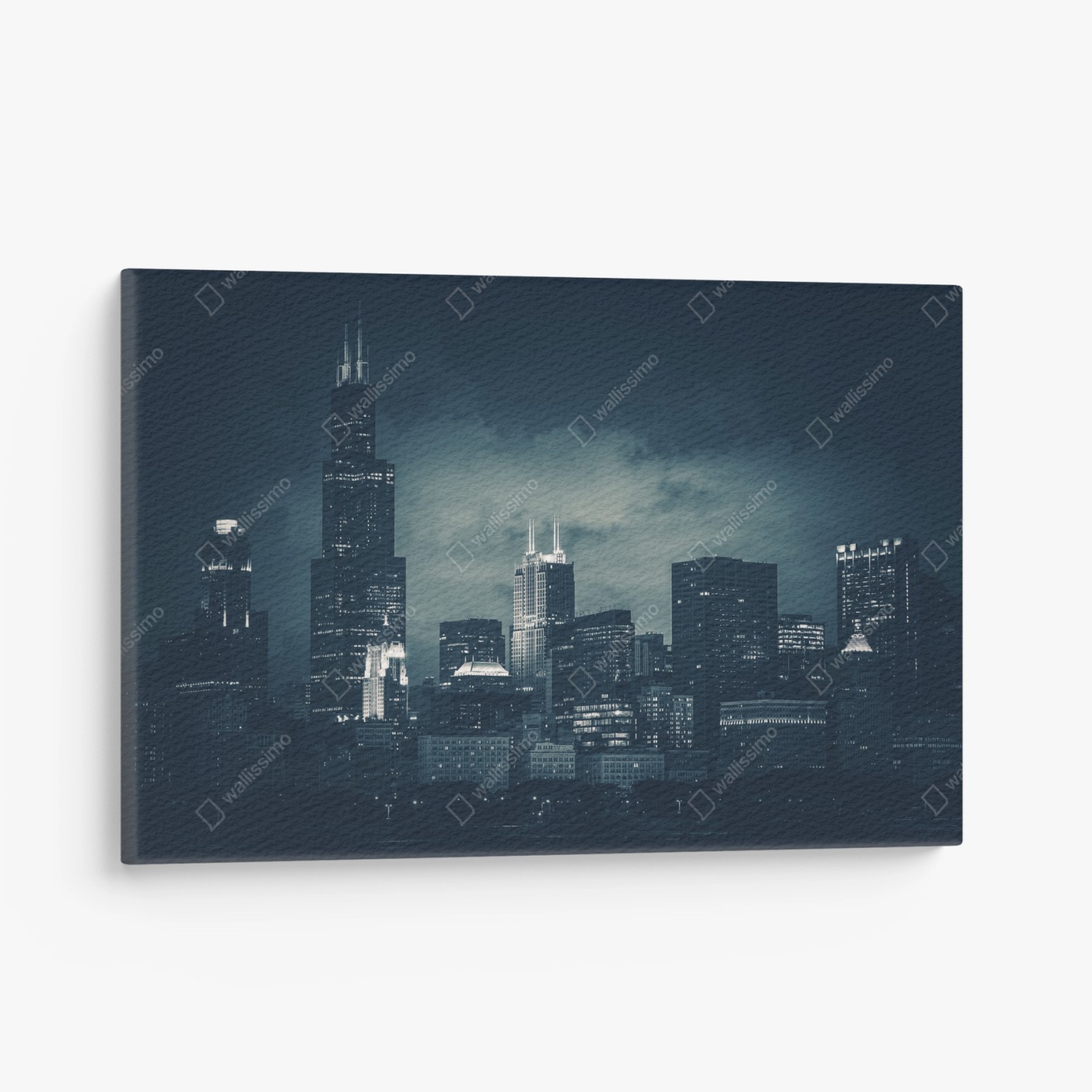 Leinwandbild Chicago skyline in tiefblauen tönen