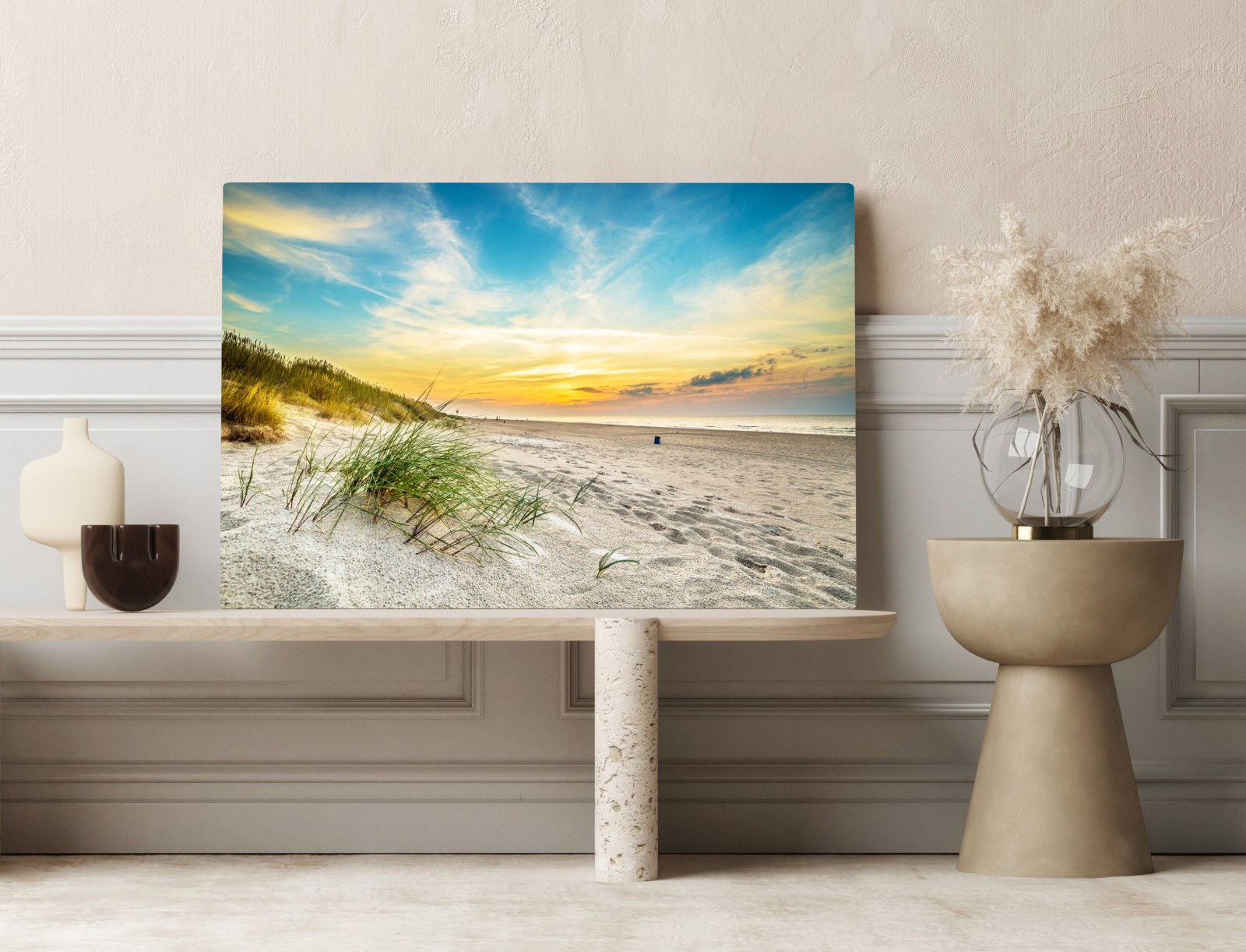 Leinwandbild Sonnenuntergang über ruhigen dünen