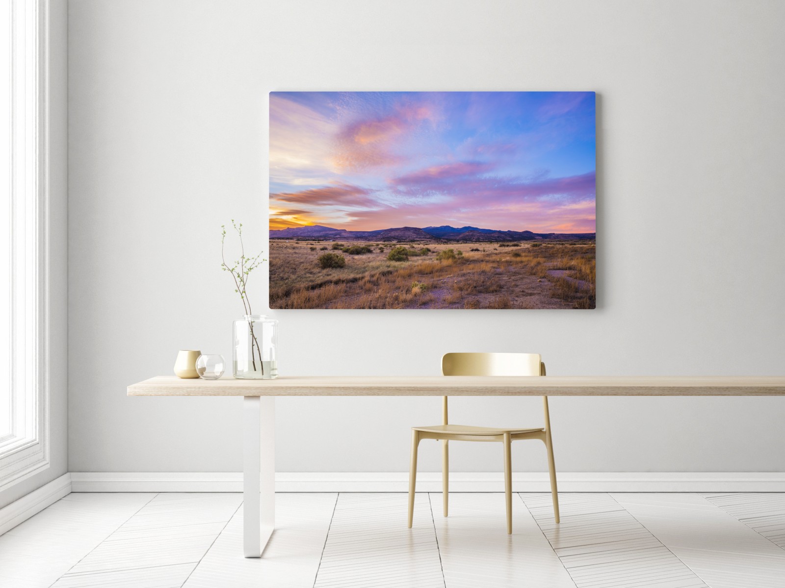 Leinwandbild Pastellsonnenuntergang über wüstenbergen