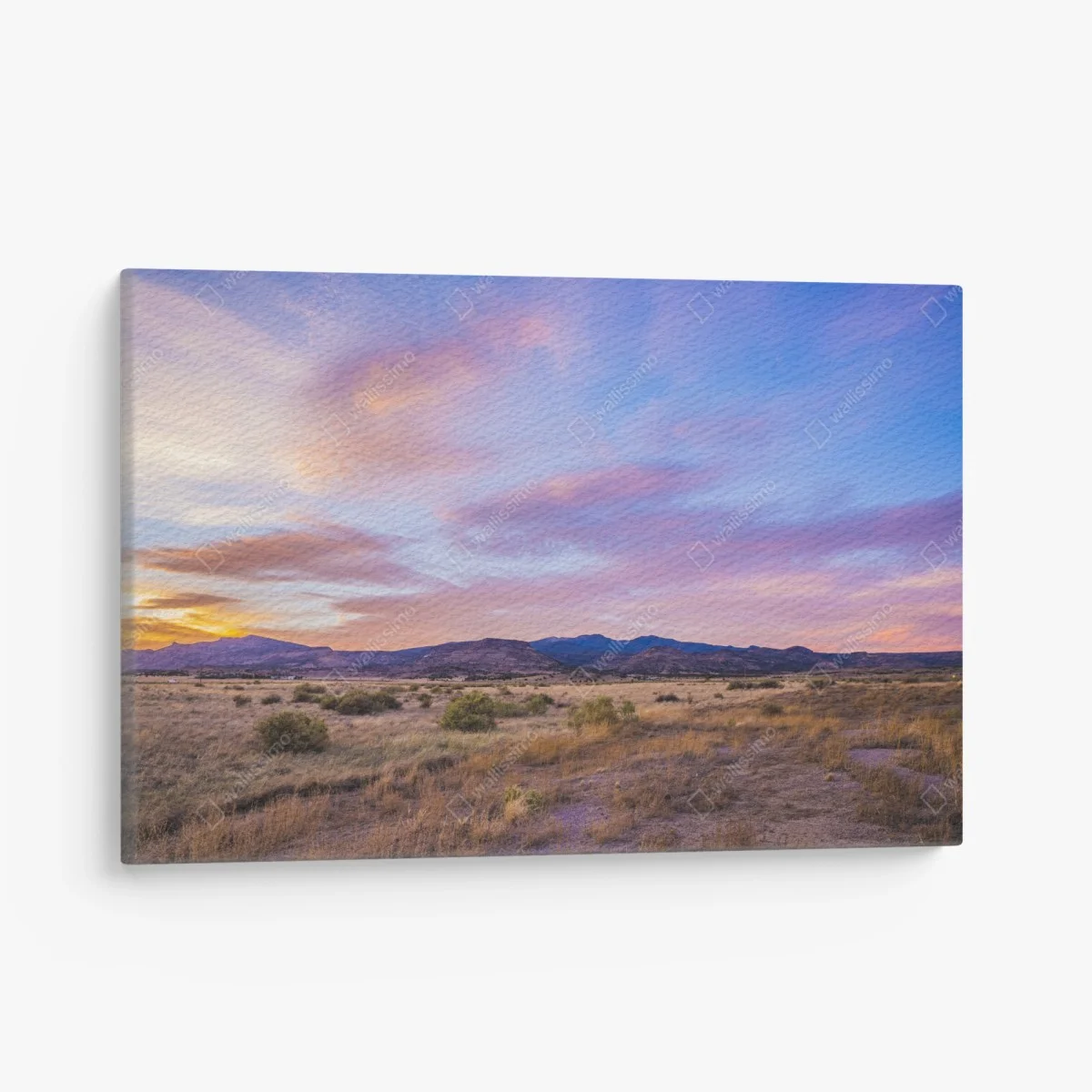 Leinwandbild Pastellsonnenuntergang über wüstenbergen