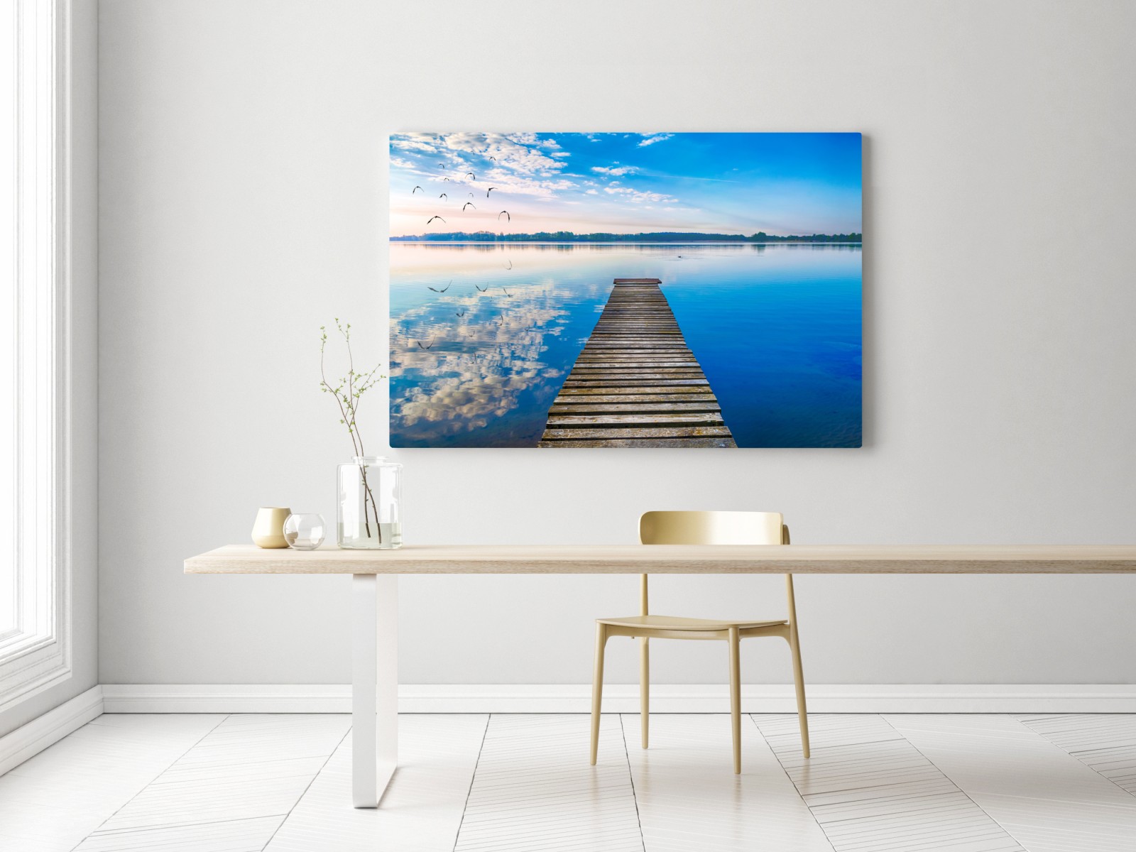 Leinwandbild Ruhiger steg am See Selment Wielki, Masuren