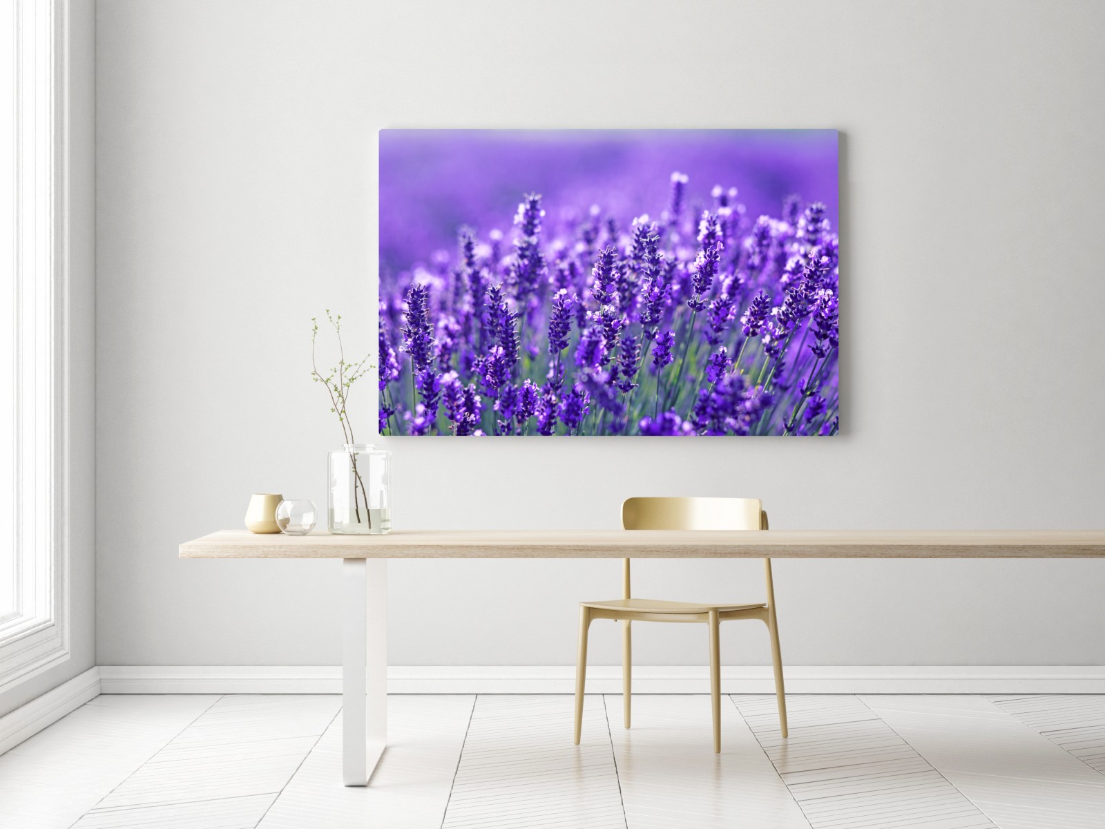 Bringen Sie beruhigendes Lavendelblüten-Flair ins Zuhause mit dieser lebendigen Nahaufnahme, die Natur und Ruhe ausstrahlt.MehrWeniger