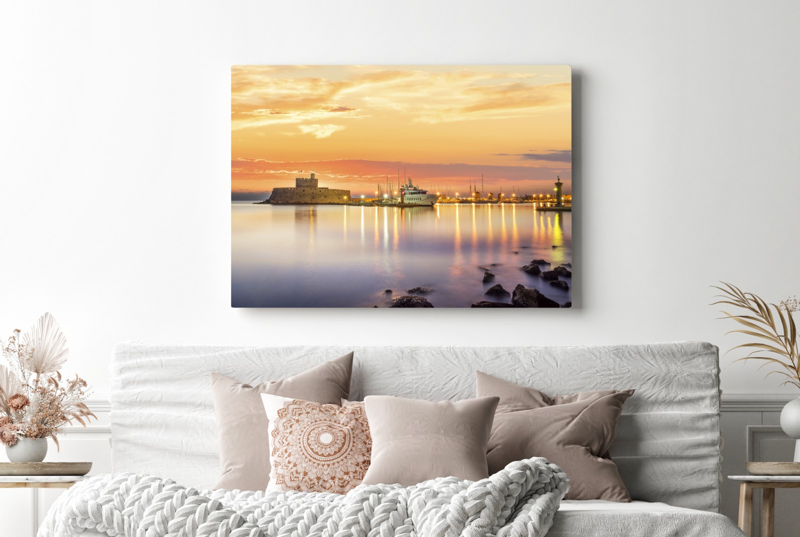 Leinwandbild Festung Agios Nikolaos im Hafen Mandraki, Rhodos