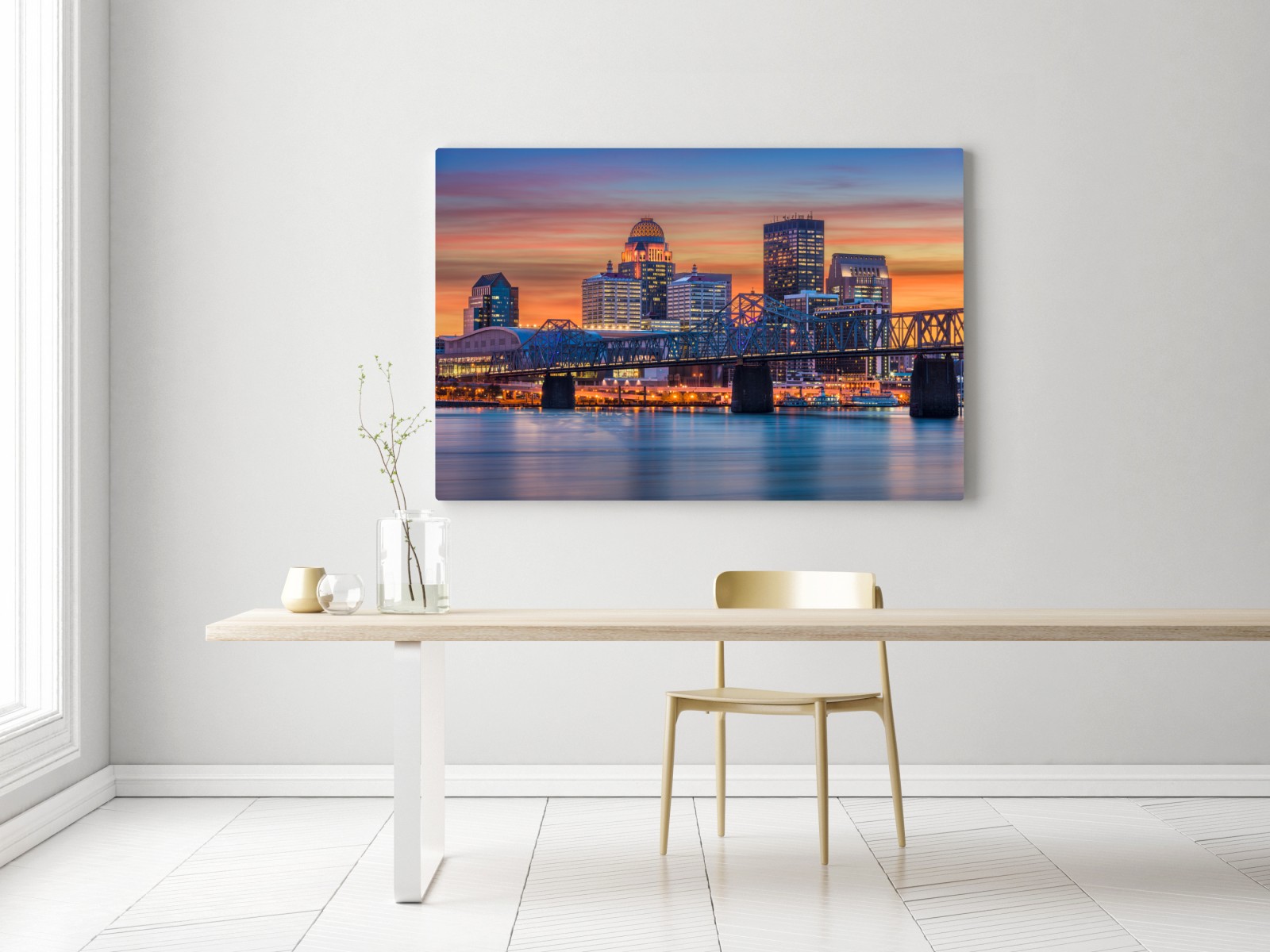 Leinwandbild Louisville skyline bei sonnenuntergang