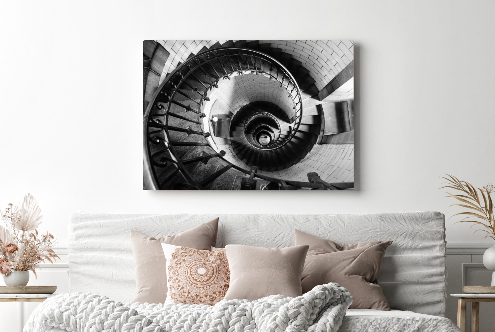 Leinwandbild Spiraltreppe in monochromer perspektive