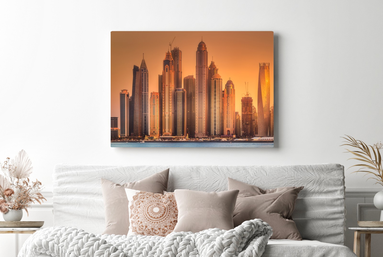 Leinwandbild Dubai skyline im goldenen licht