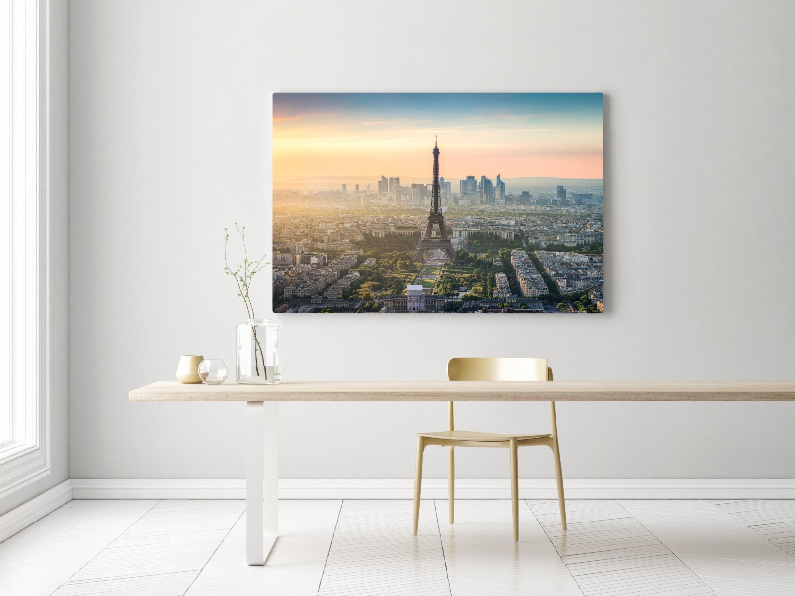 Leinwandbild Paris stadtbild bei sonnenuntergang mit dem Eiffelturm