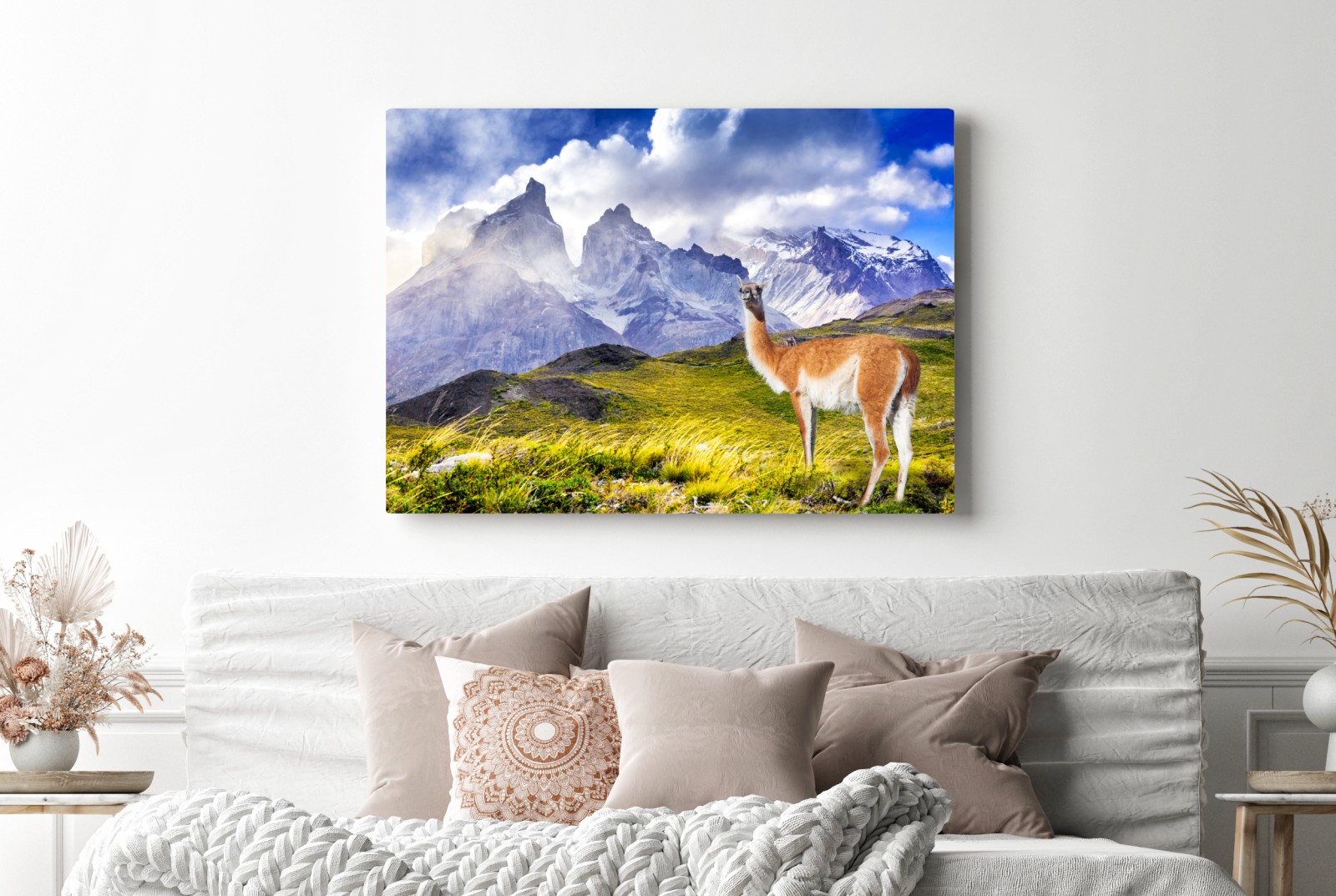 Leinwandbild Torres del Paine Patagonia landschaft mit guanako