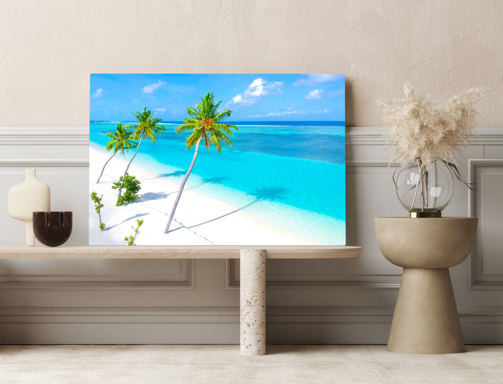 Leinwandbild Tropischer türkisfarbener strand mit palmen