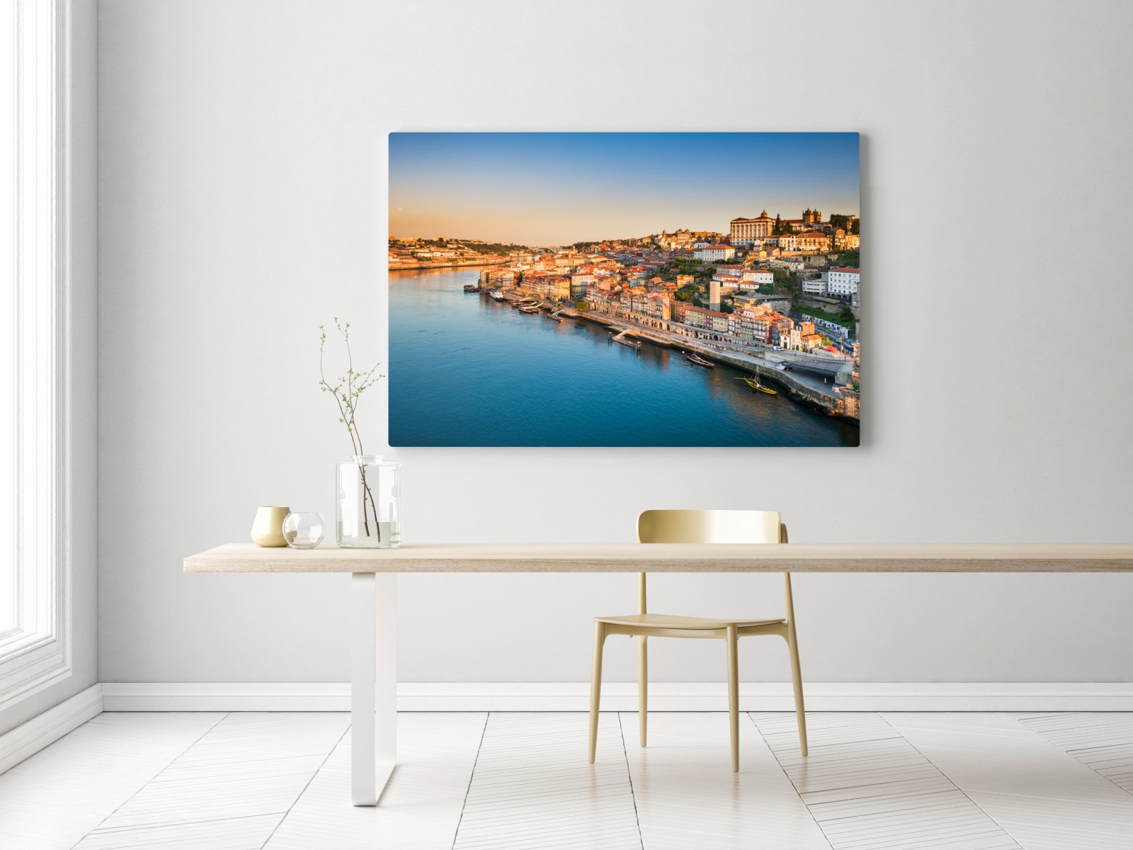 Leinwandbild Sonnige Porto ufer-skyline im goldenen licht