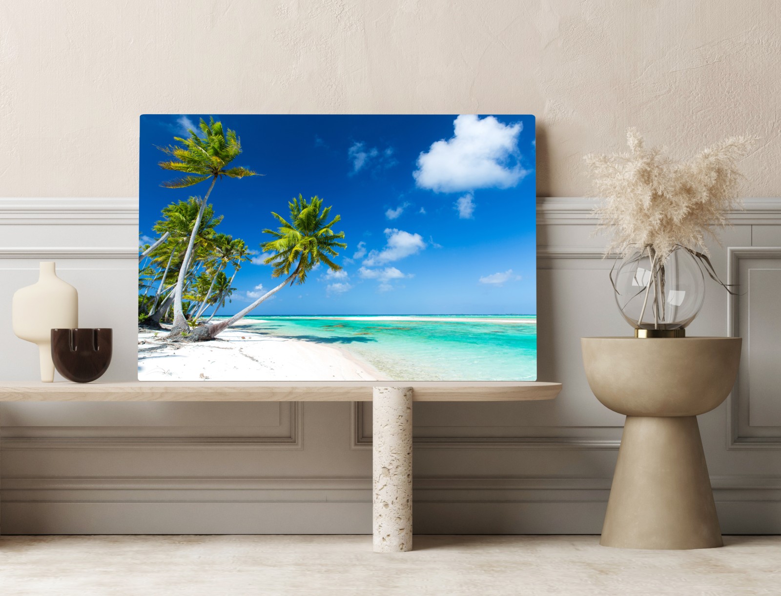 Leinwandbild Tropischer strand mit palmen und türkisfarbenem wasser