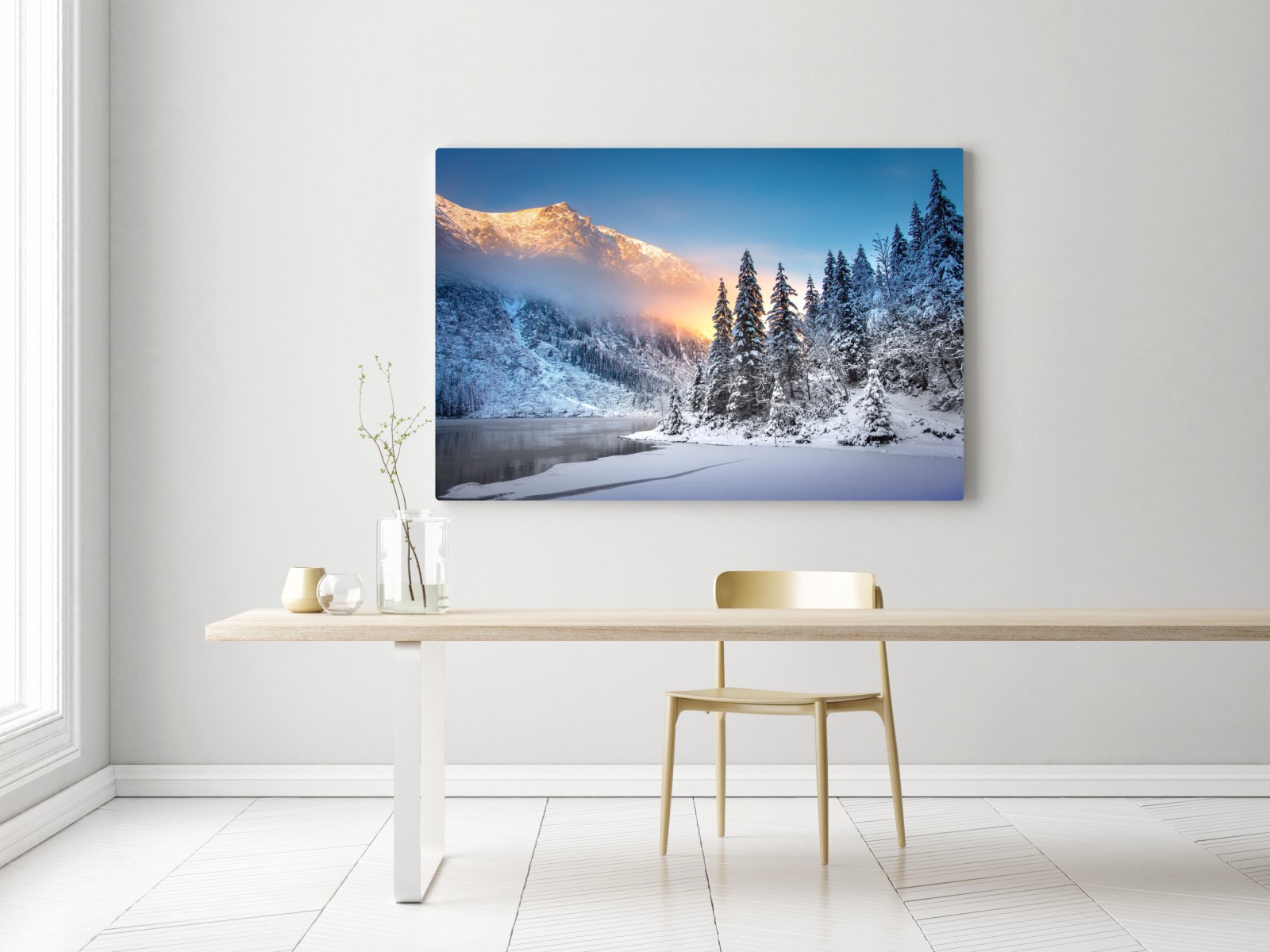 Leinwandbild Winterlicher sonnenaufgang am Morskie Oko