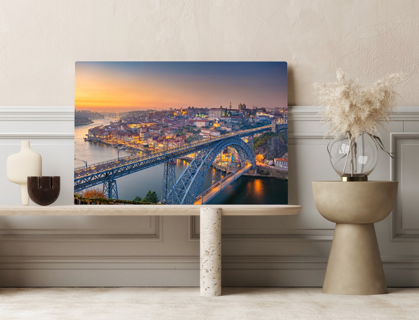 Leinwandbild Porto skyline bei dämmerung mit Dom Luís I