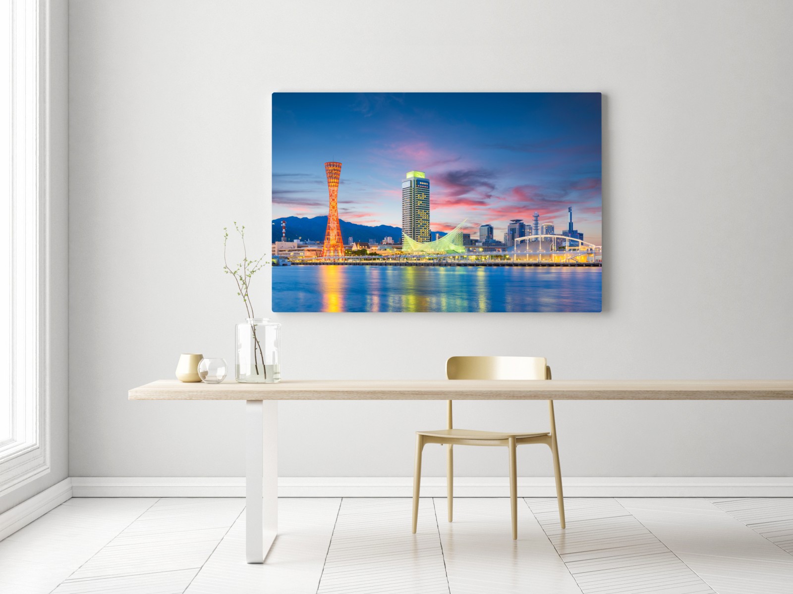Leinwandbild Kobe skyline bei dämmerung
