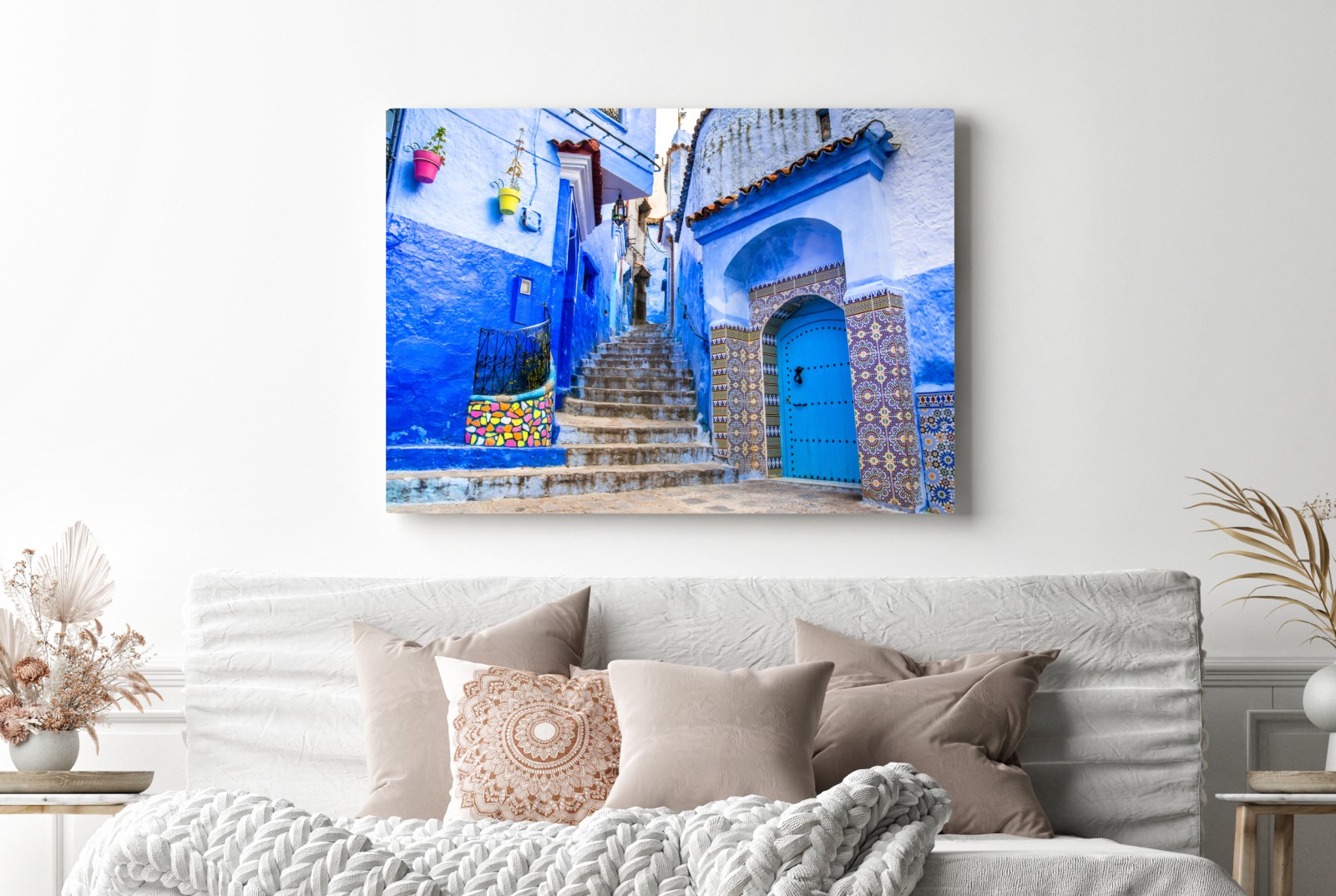 Leinwandbild Blaue gasse in Chefchaouen, Marokko